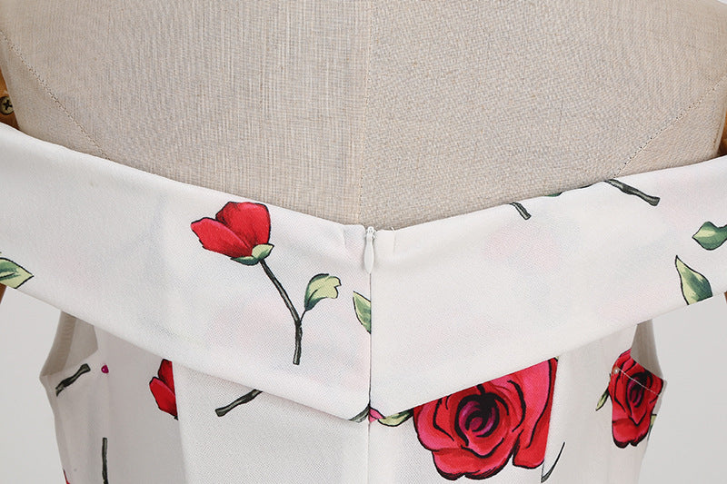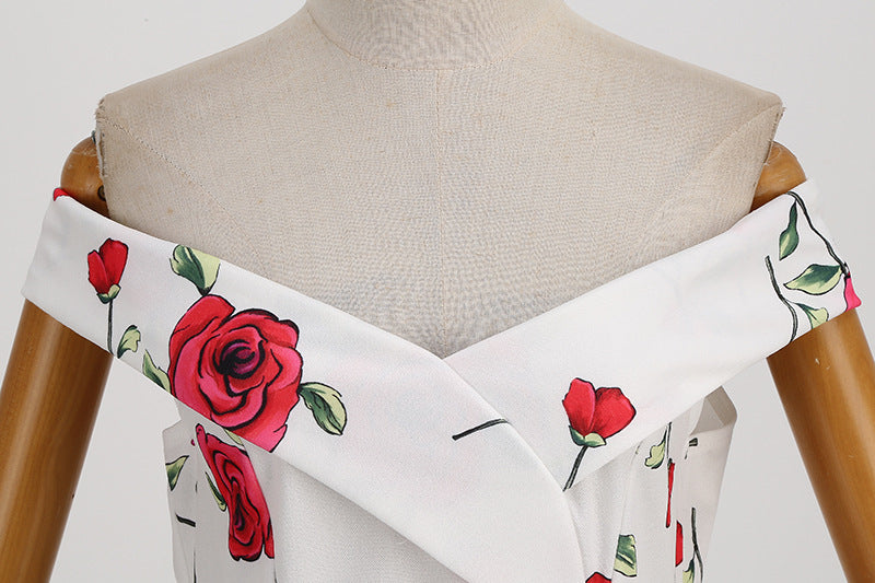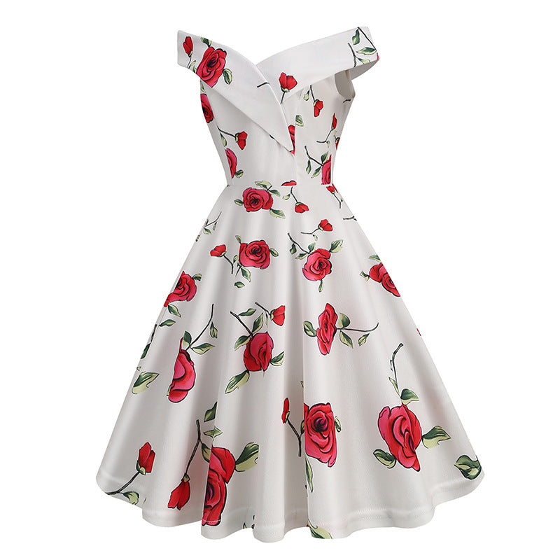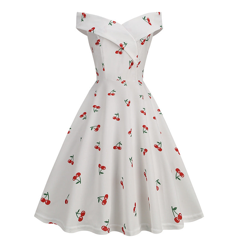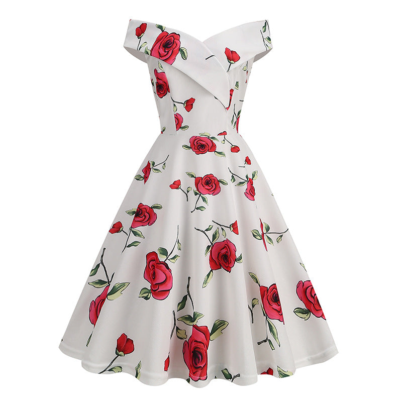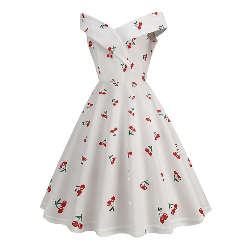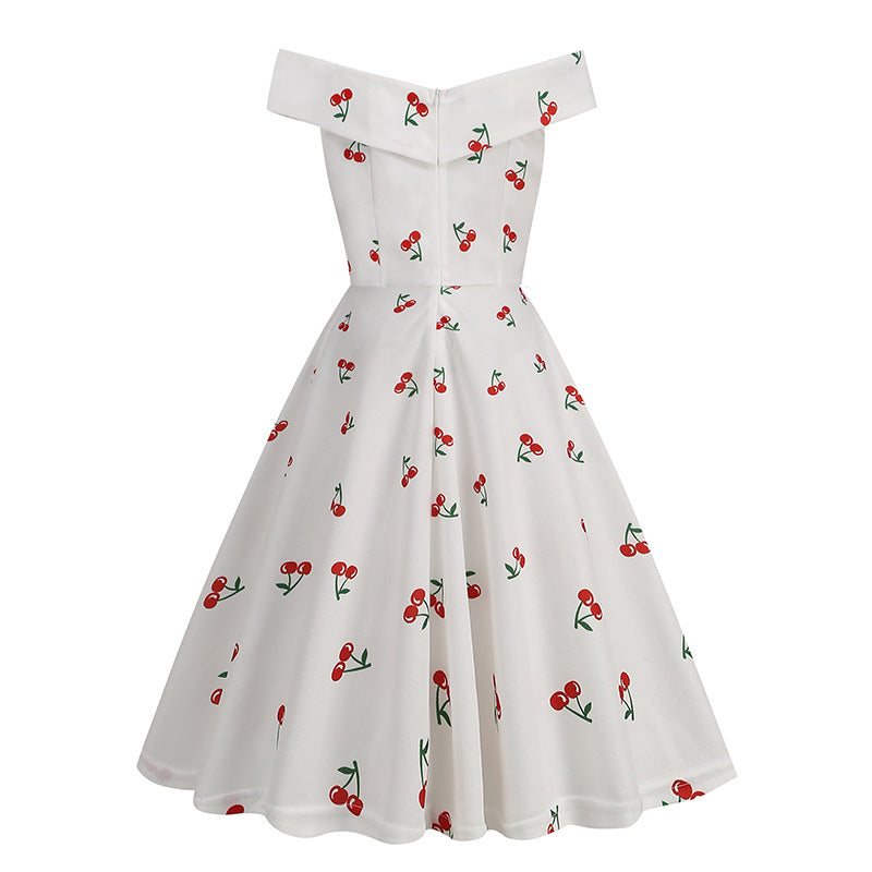 Step back in time to the 1950s with our Black Off Shoulder Polka Dot Vintage Dress. Its A-line cut flatters any figure, and the off-shoulder style adds a timeless touch. The playful polka dots and black fabric give off a vintage vibe, making it perfect for any event.