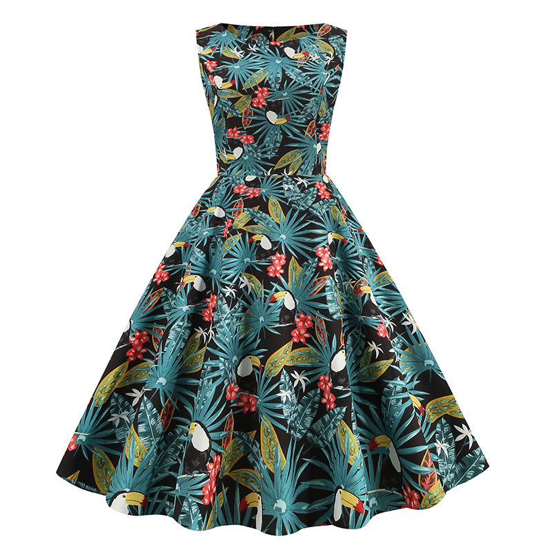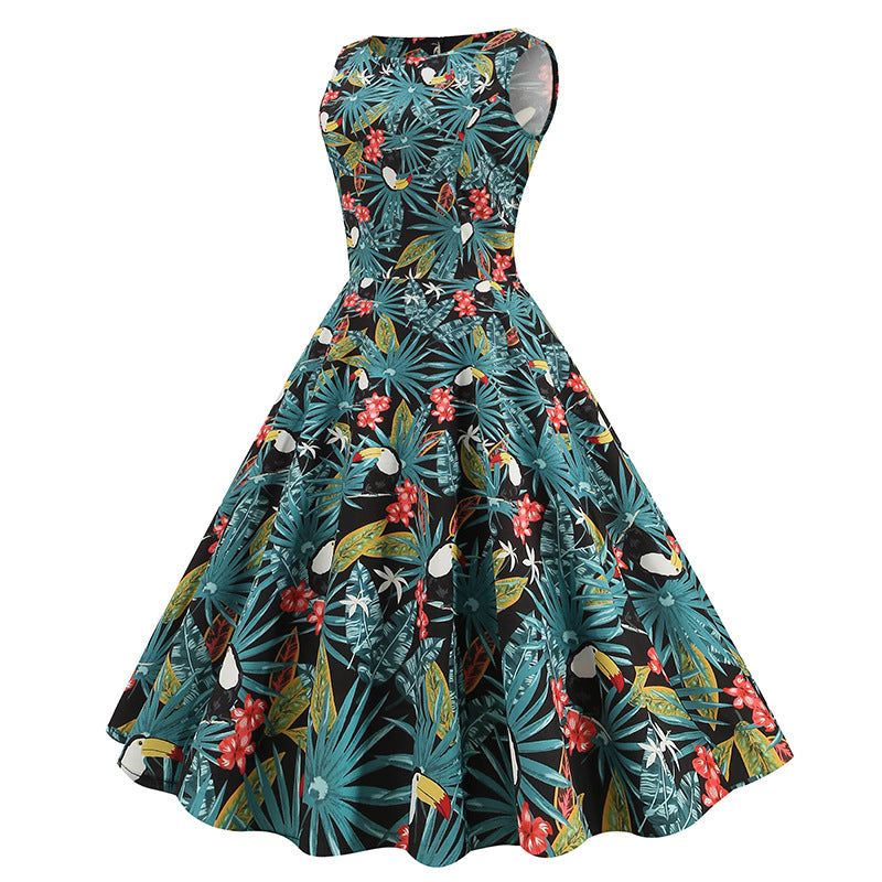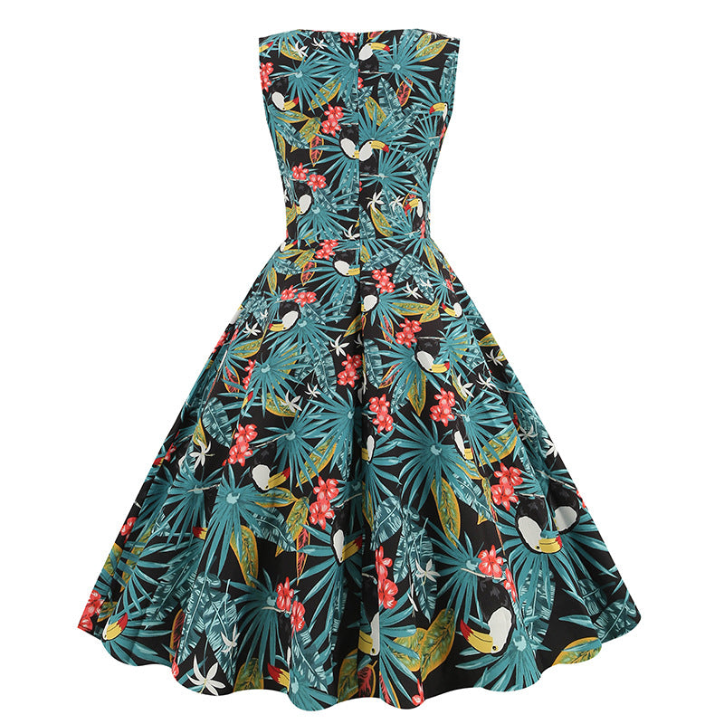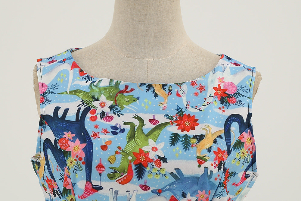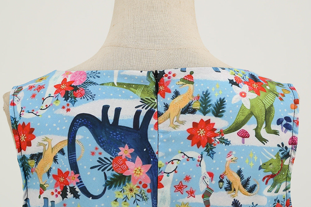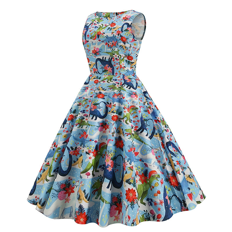 1950S Blue Dinosaur Print Retro Sleeveless Vintage Dress