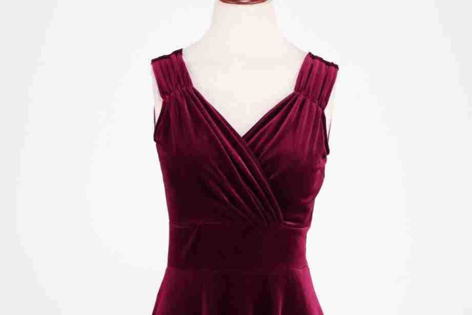 1950S Burgundy Velvet Sleeveless Vintage Dress