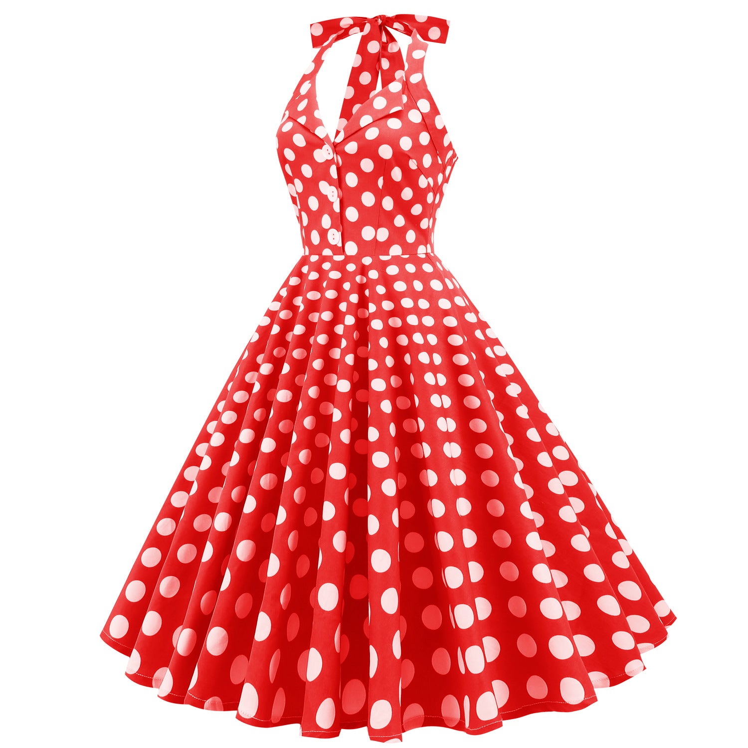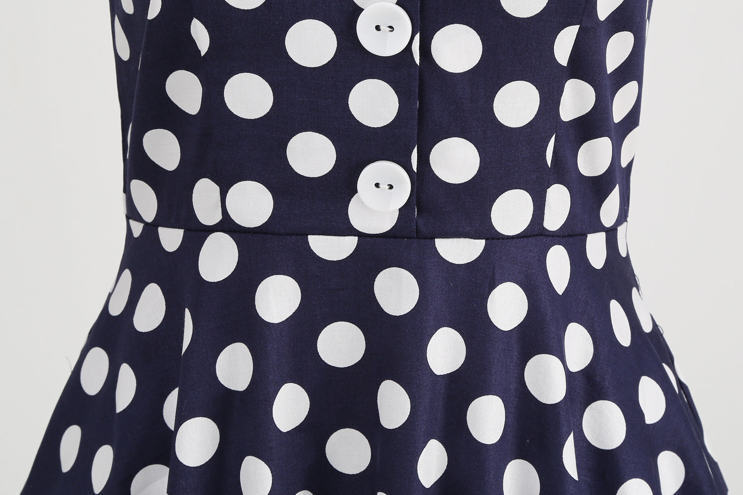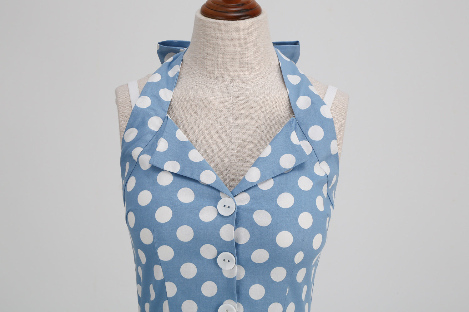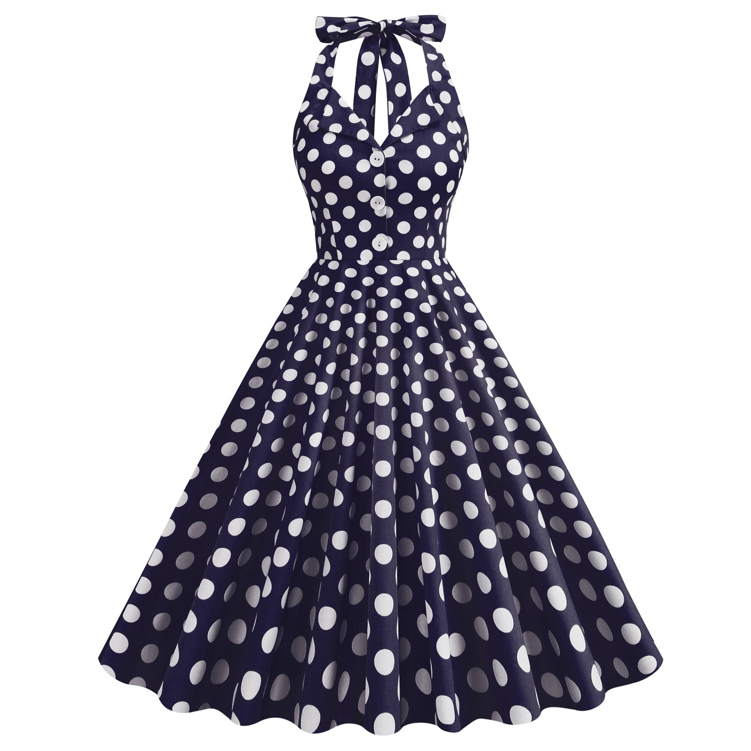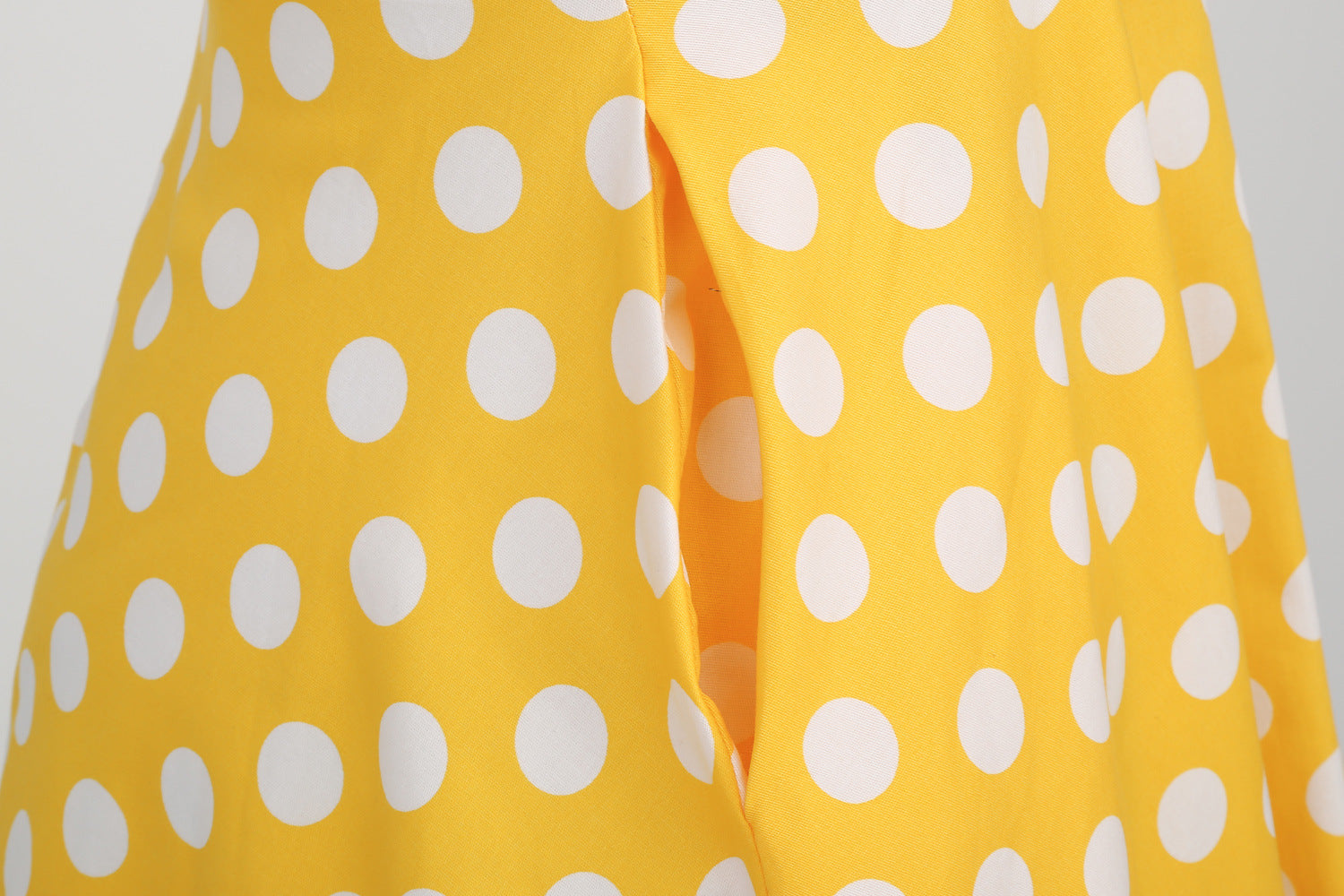 The 1950s come alive with our Green Retro Polka Dot Halter Belted Sleeveless Vintage Dress. Its timeless halter neckline and A-line silhouette create a flattering and classic look. The charming polka dots and vibrant green fabric add a touch of vintage flair, making it the perfect choice for any event.