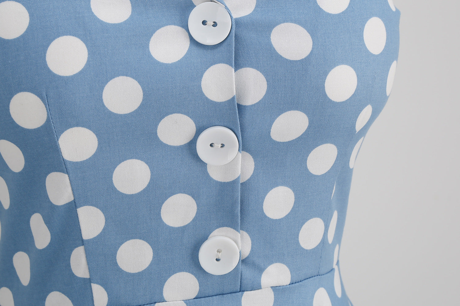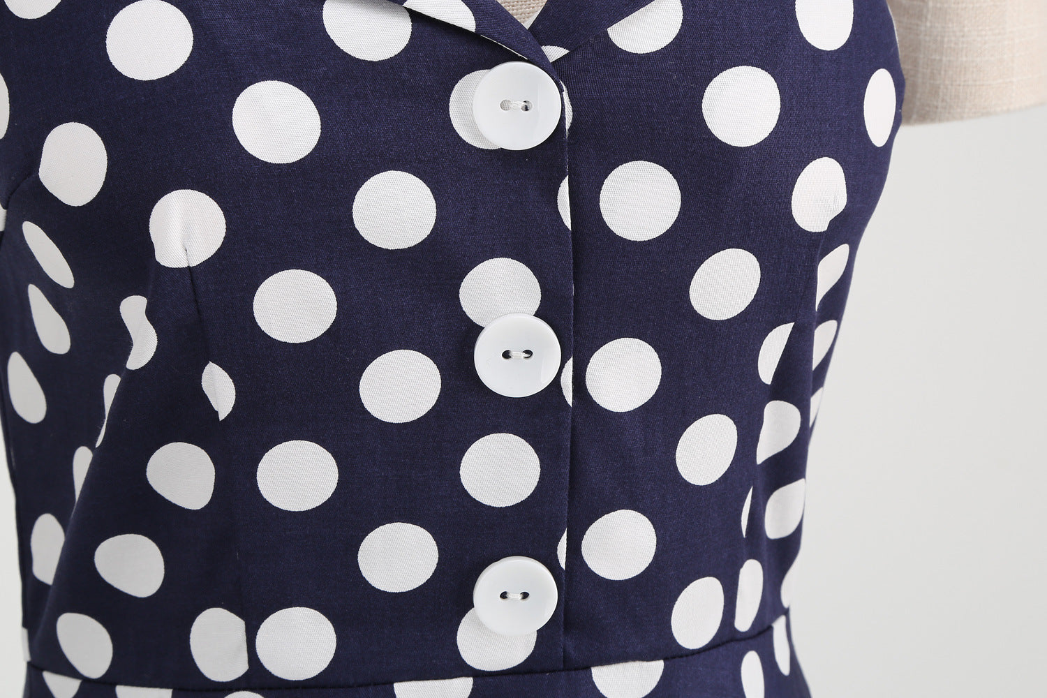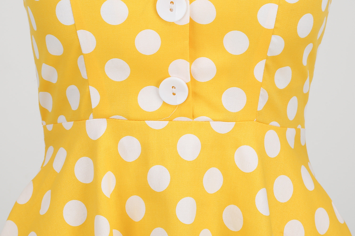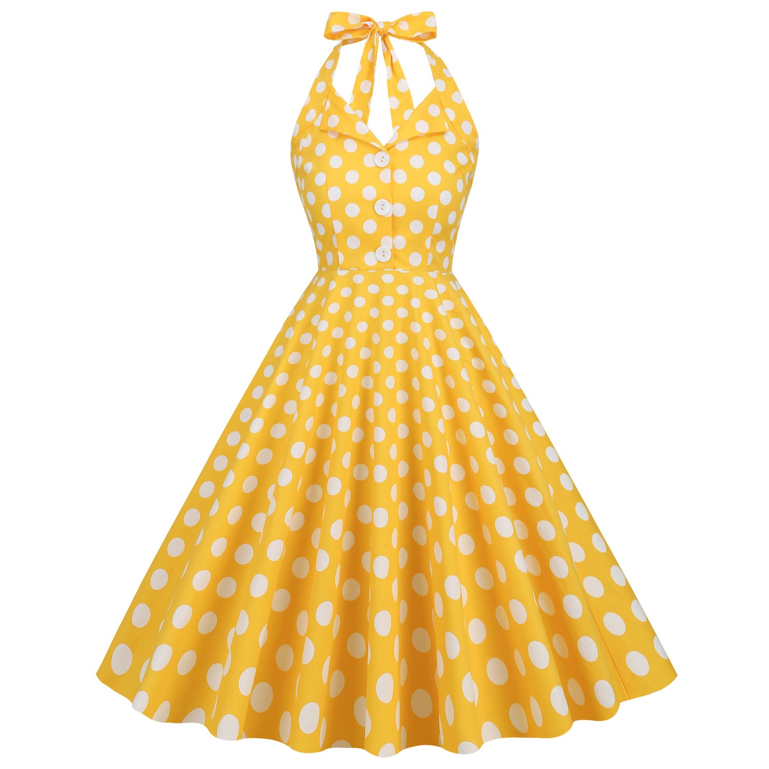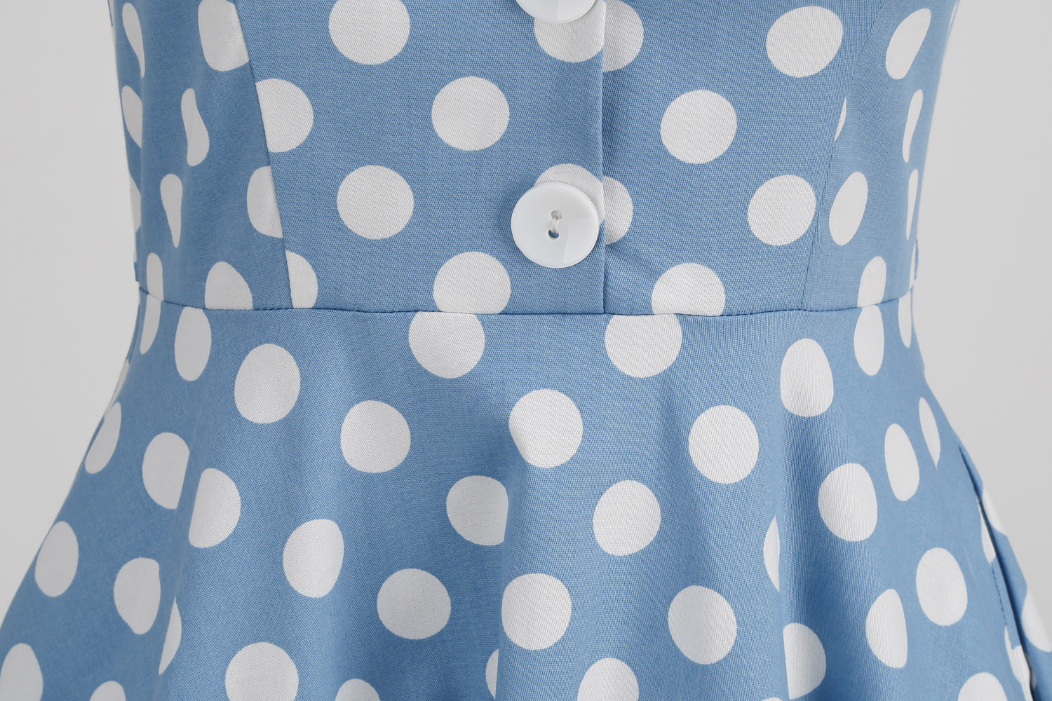 The 1950s come alive with our Green Retro Polka Dot Halter Belted Sleeveless Vintage Dress. Its timeless halter neckline and A-line silhouette create a flattering and classic look. The charming polka dots and vibrant green fabric add a touch of vintage flair, making it the perfect choice for any event.