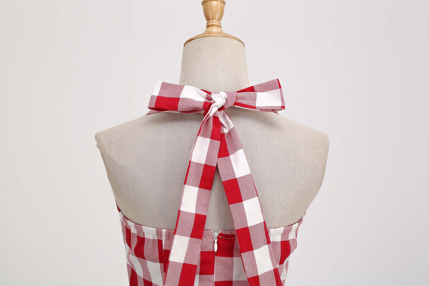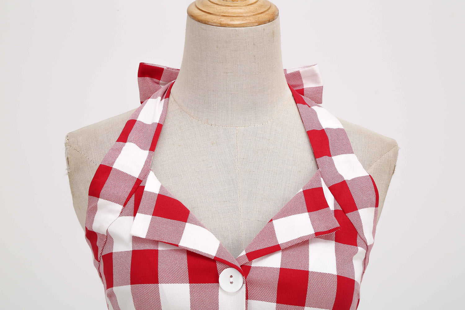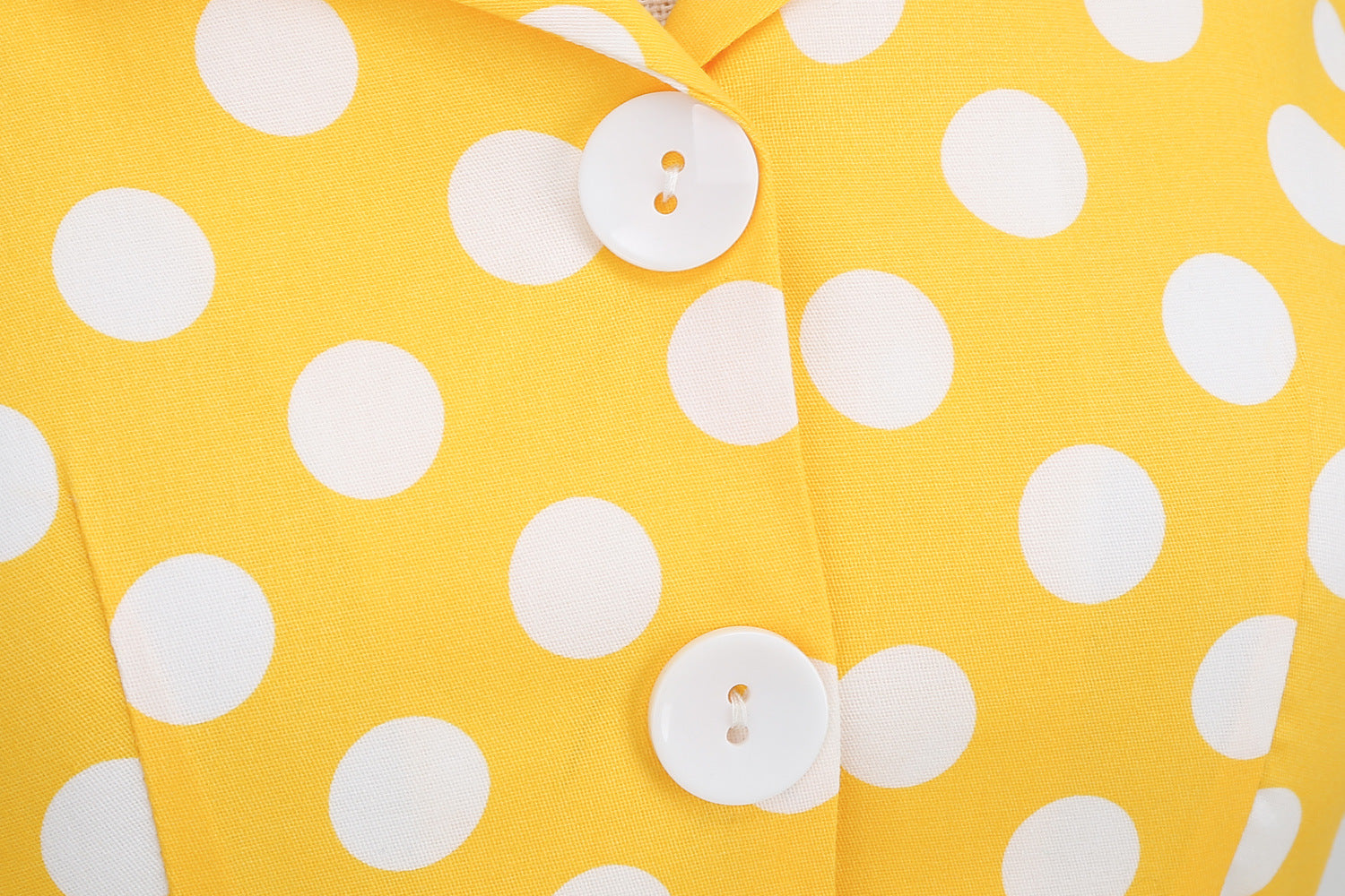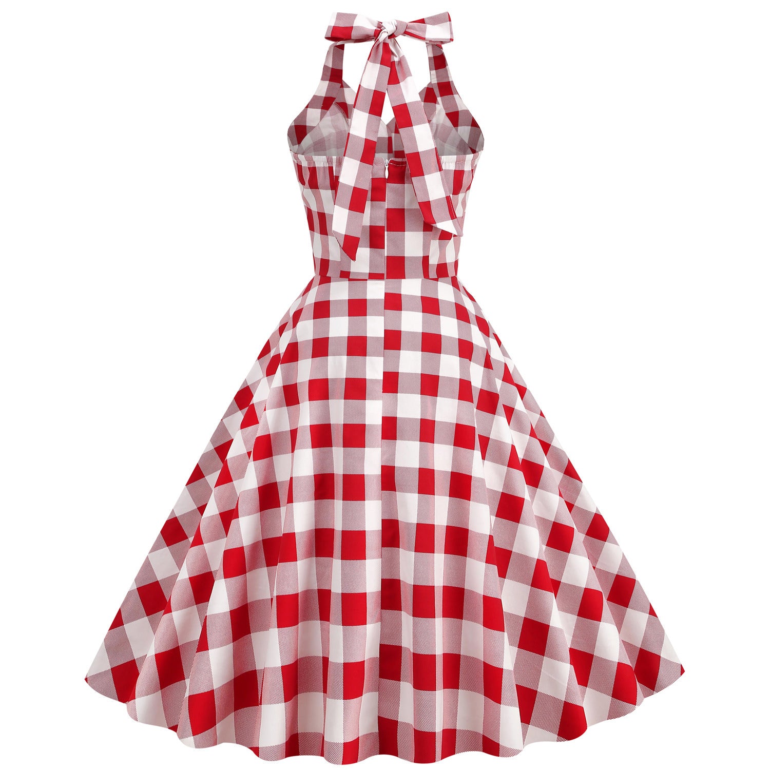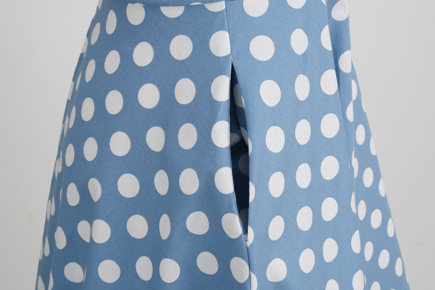 The 1950s come alive with our Green Retro Polka Dot Halter Belted Sleeveless Vintage Dress. Its timeless halter neckline and A-line silhouette create a flattering and classic look. The charming polka dots and vibrant green fabric add a touch of vintage flair, making it the perfect choice for any event.