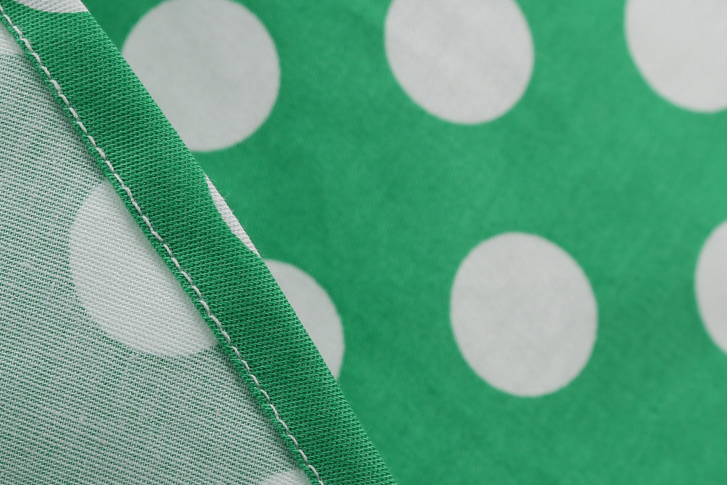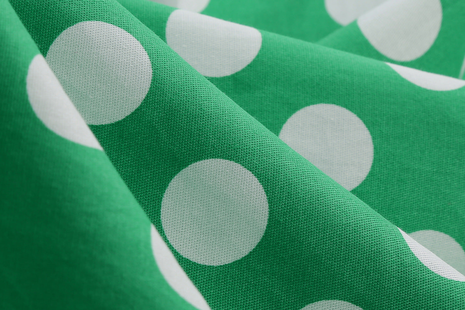 • Color and Pattern: Vibrant green color adorned with playful white polka dots