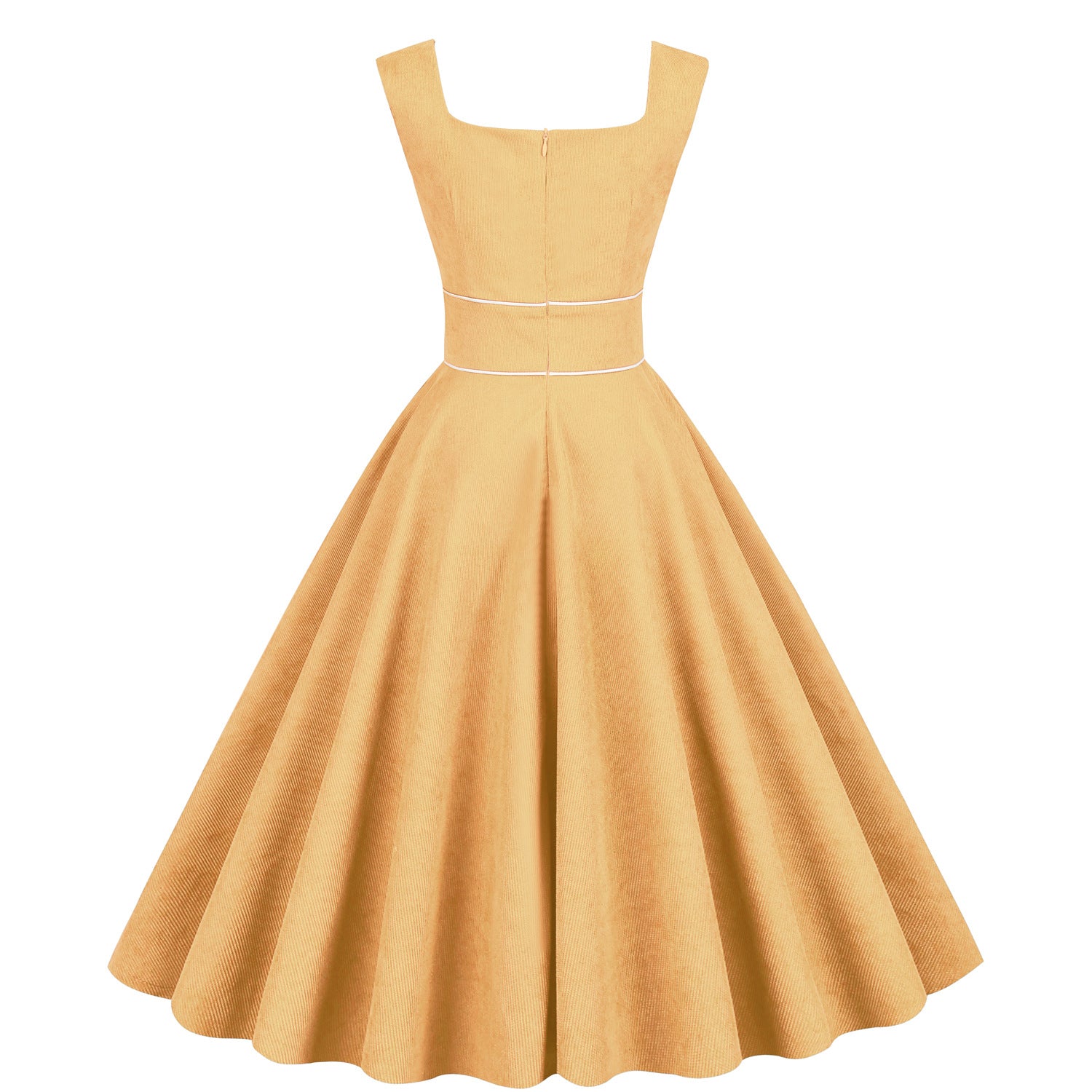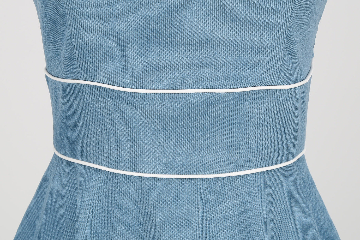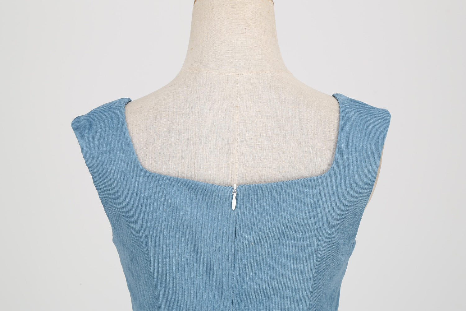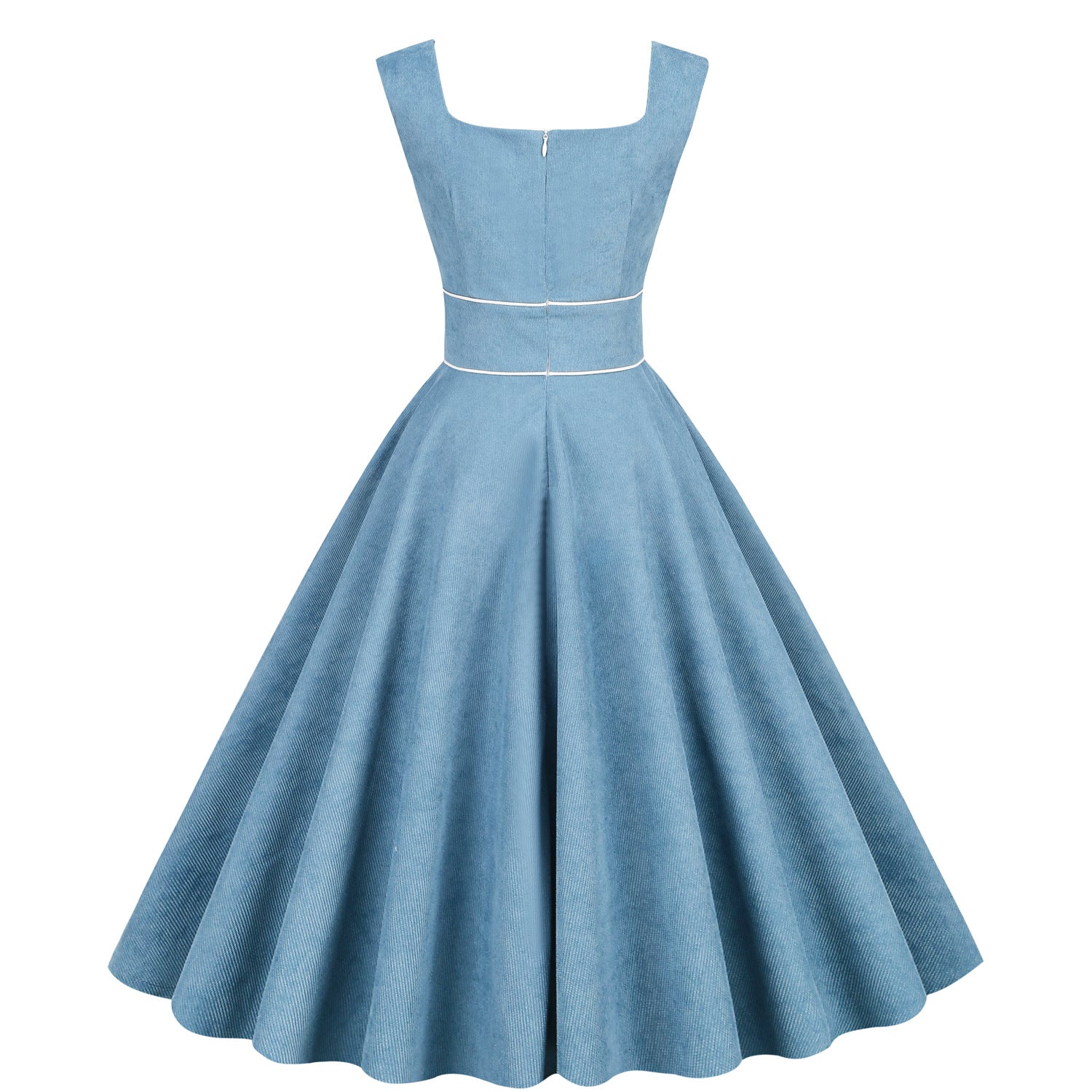 Step back in time to the 1950s with our Light Blue Retro Belted Sleeveless Vintage Swing Dress. Its iconic A-line design flatters your figure, while the square neckline adds a timeless touch. Made with elegant light blue corduroy, this dress exudes vintage charm and is perfect for any occasion.