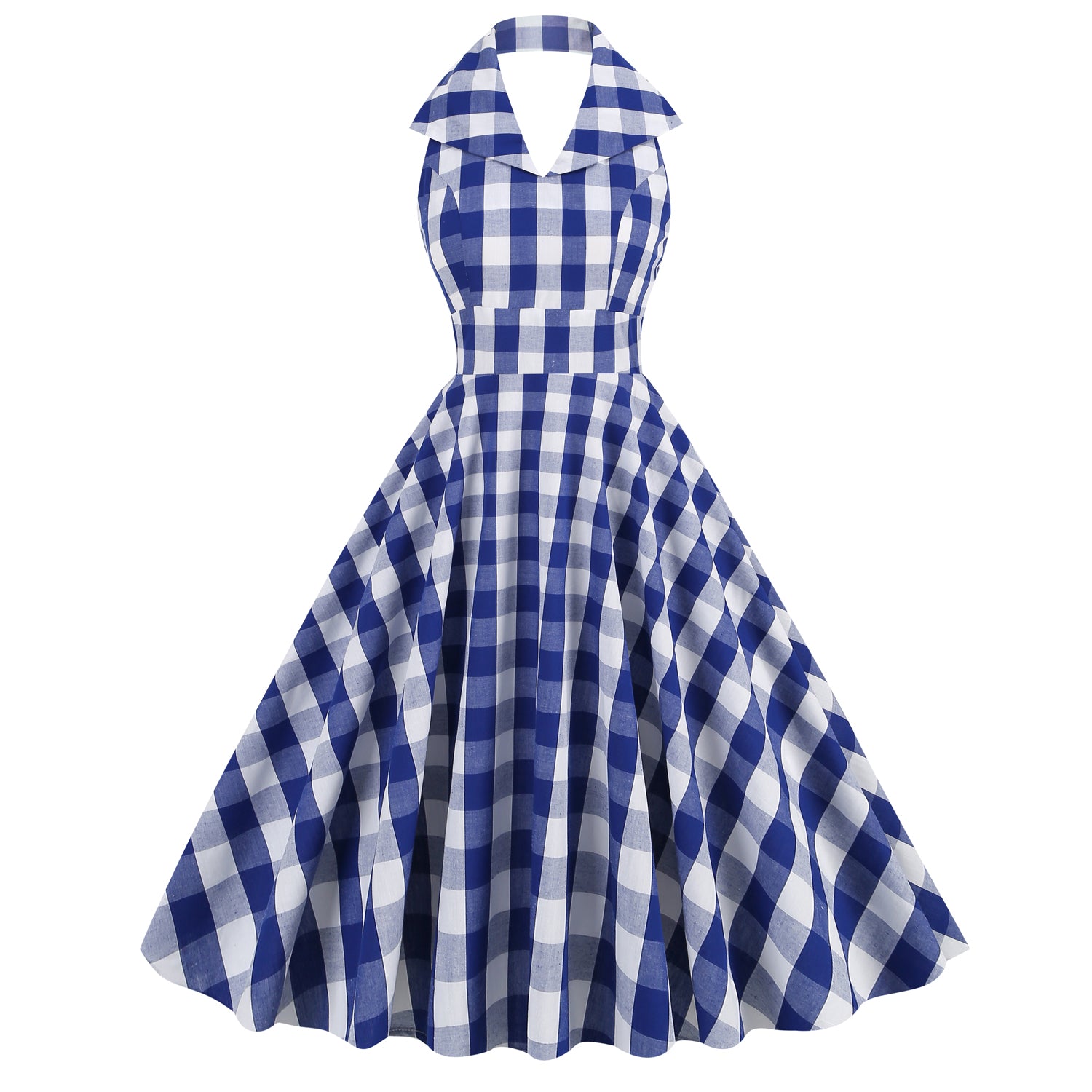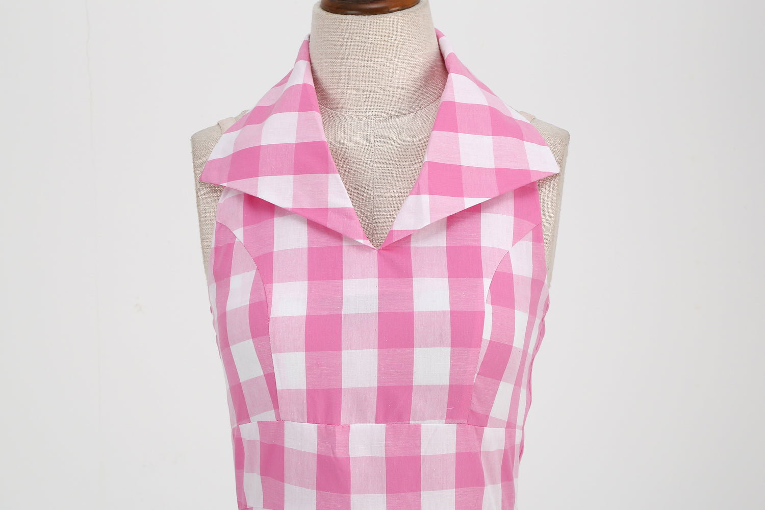 1950s Pink Retro Gingham Halter Neck Sleveless Vintage Dress