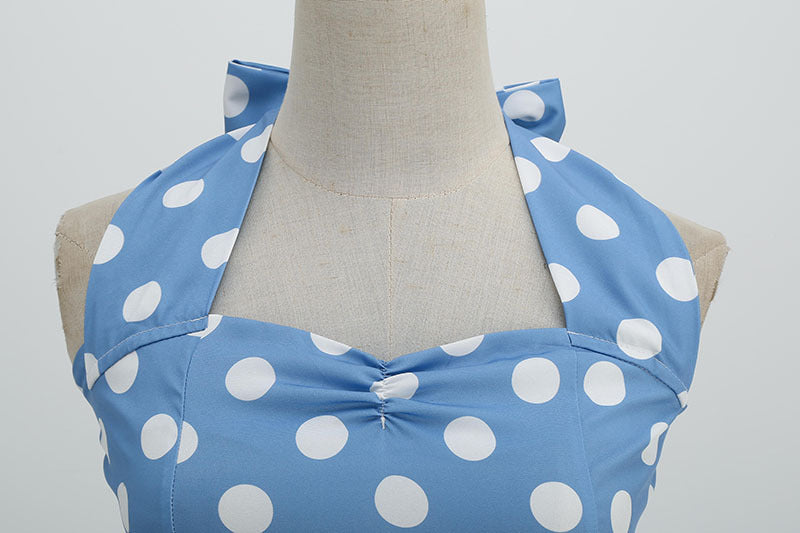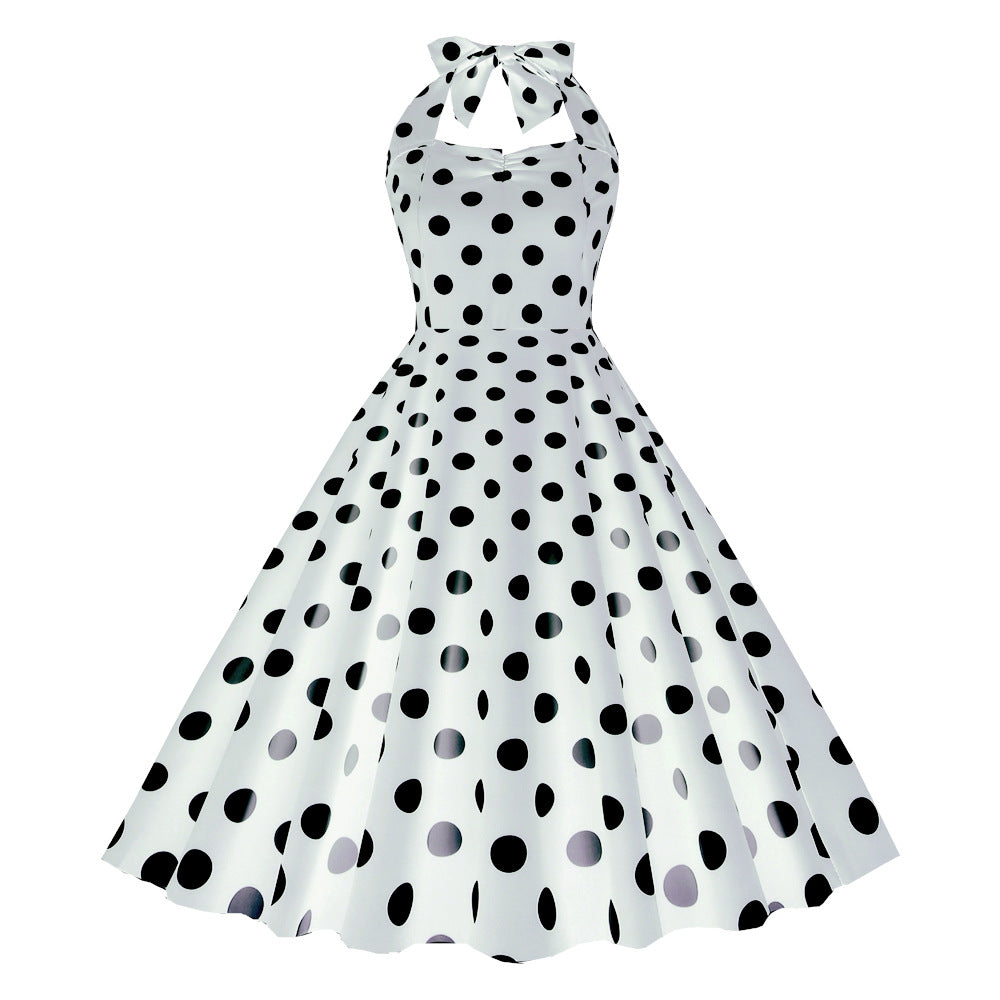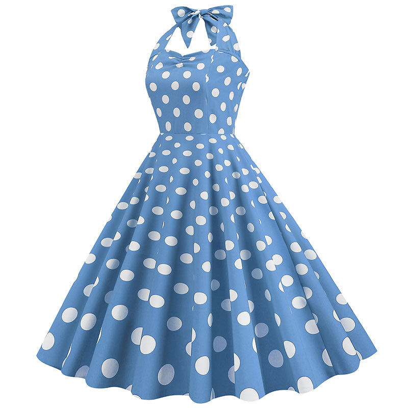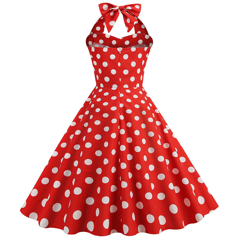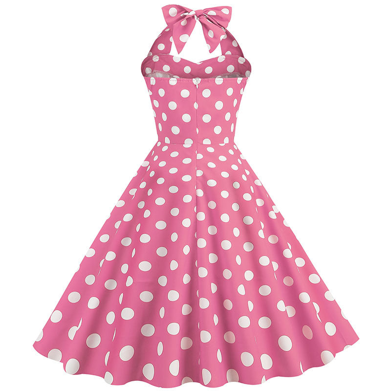 Get transported back to the 1950s with our charming Pink Retro Polka Dot Halter Belted Sleeveless Vintage Dress. Its A-line design flatters any figure, while the halter neckline and sweet bow give it a timeless feel. The playful polka dots on the vibrant pink fabric add a vintage touch, making it perfect for any event.