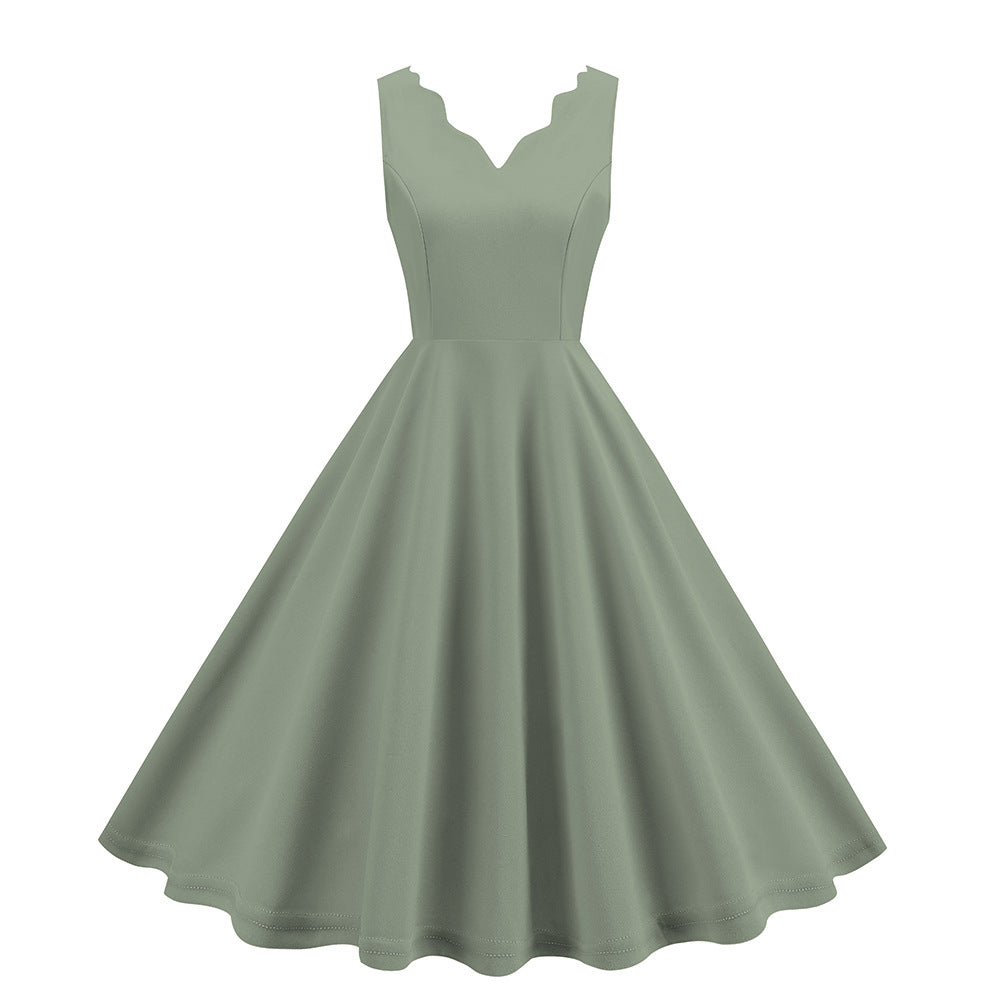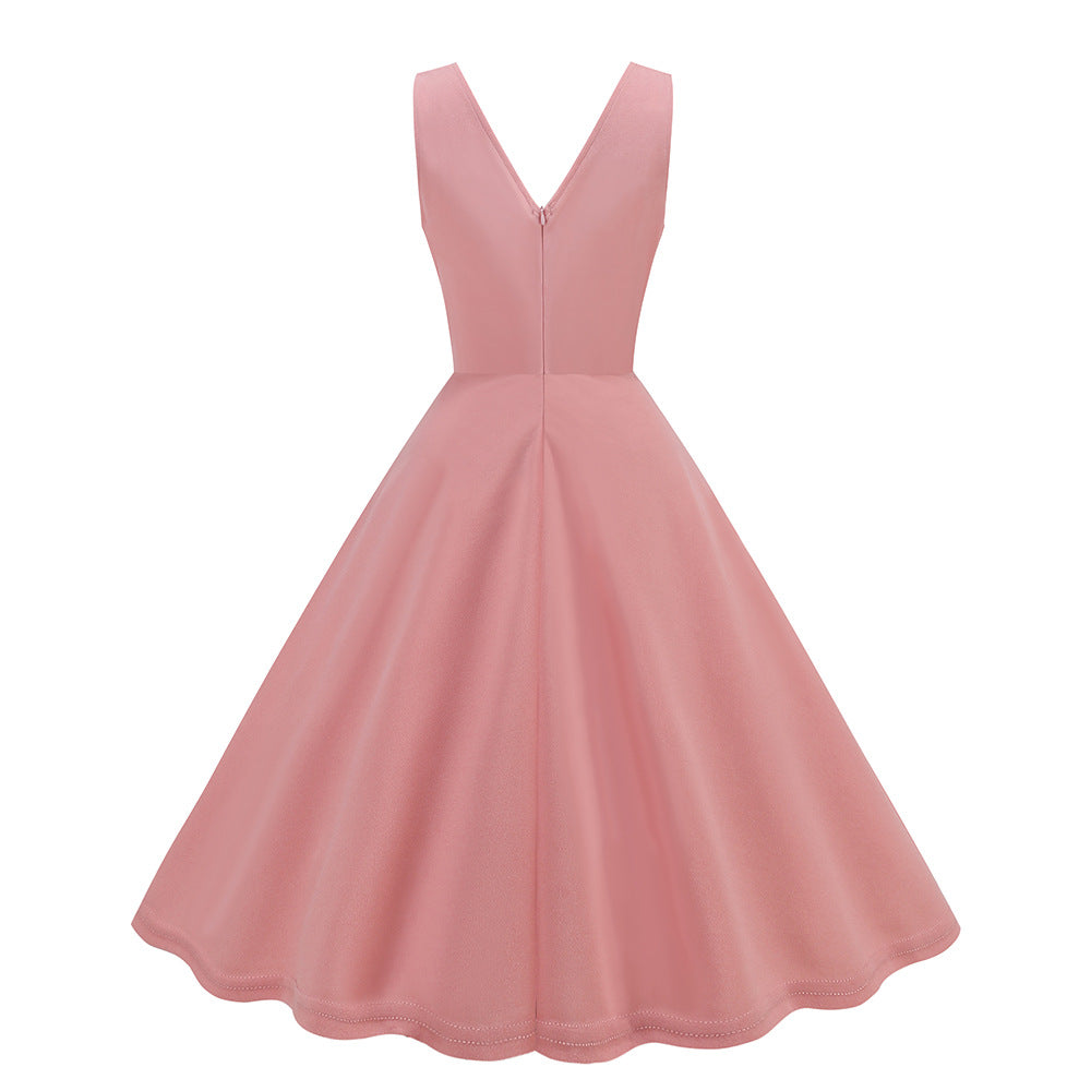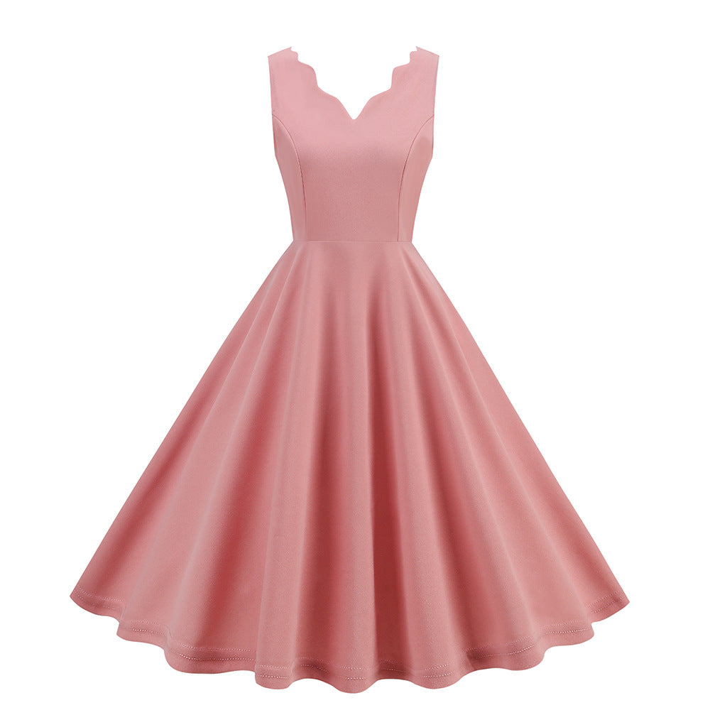 1950S Pink Scalloped Neck Sleeveless Vintage Dress