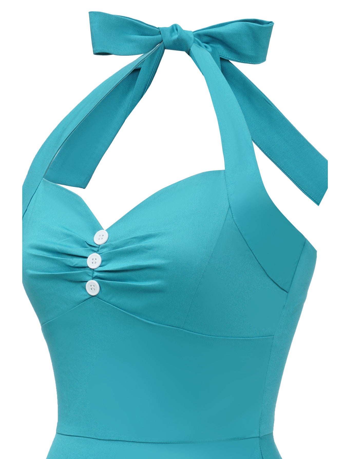 1950S Turquoise Halter Neck Button Detail Vintage Dress