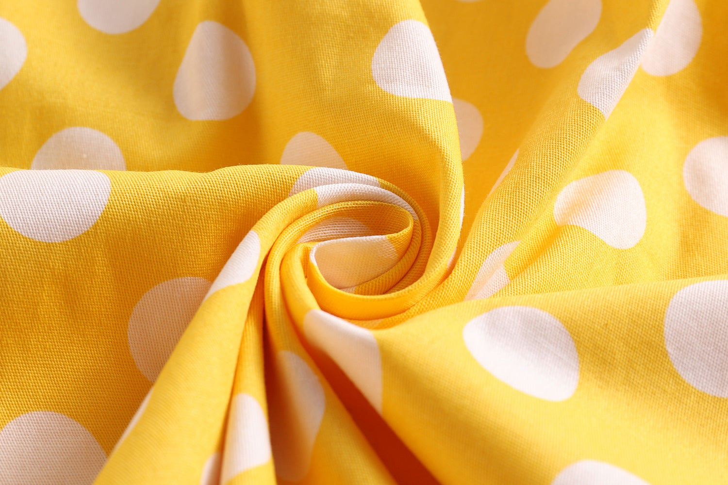 • Color and Pattern: Vibrant yellow color adorned with playful white polka dots