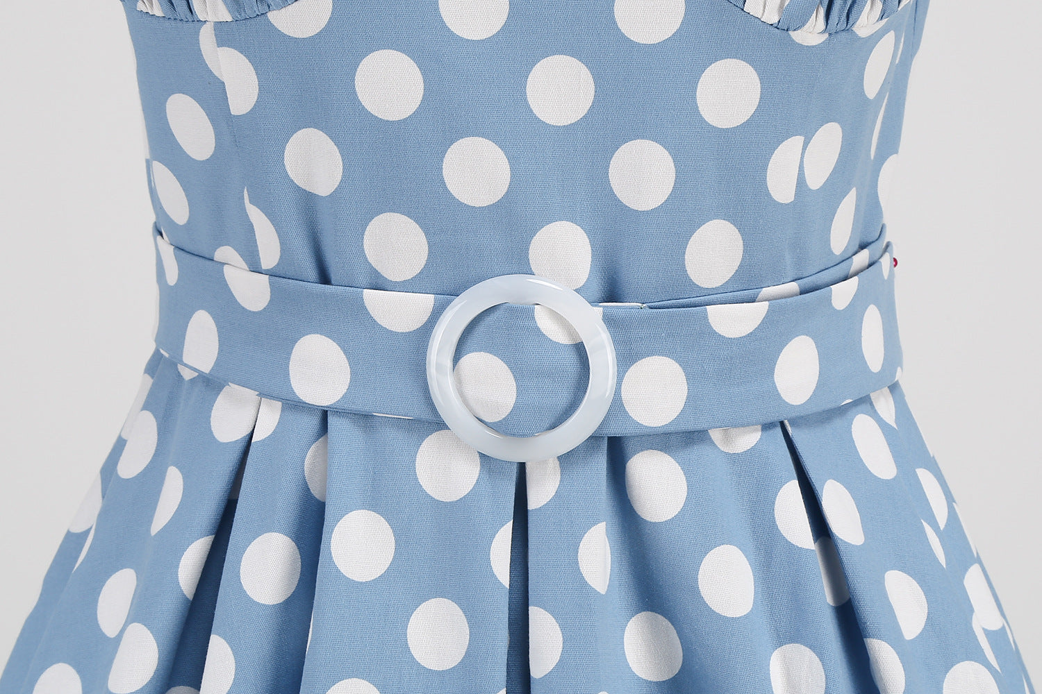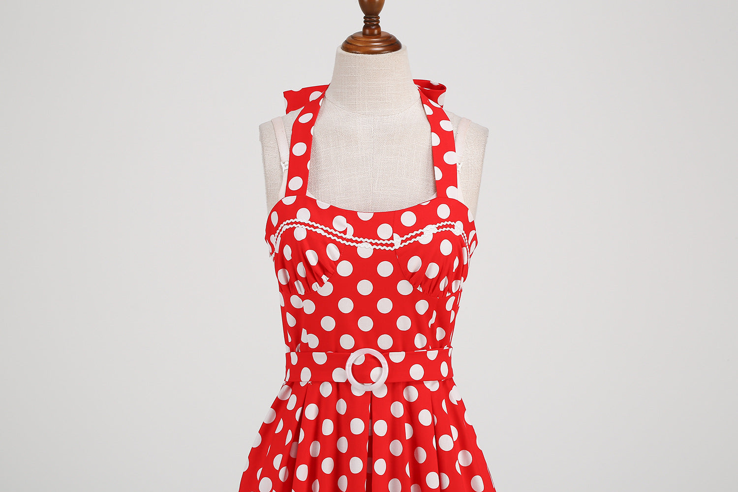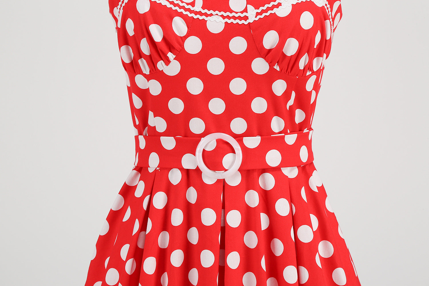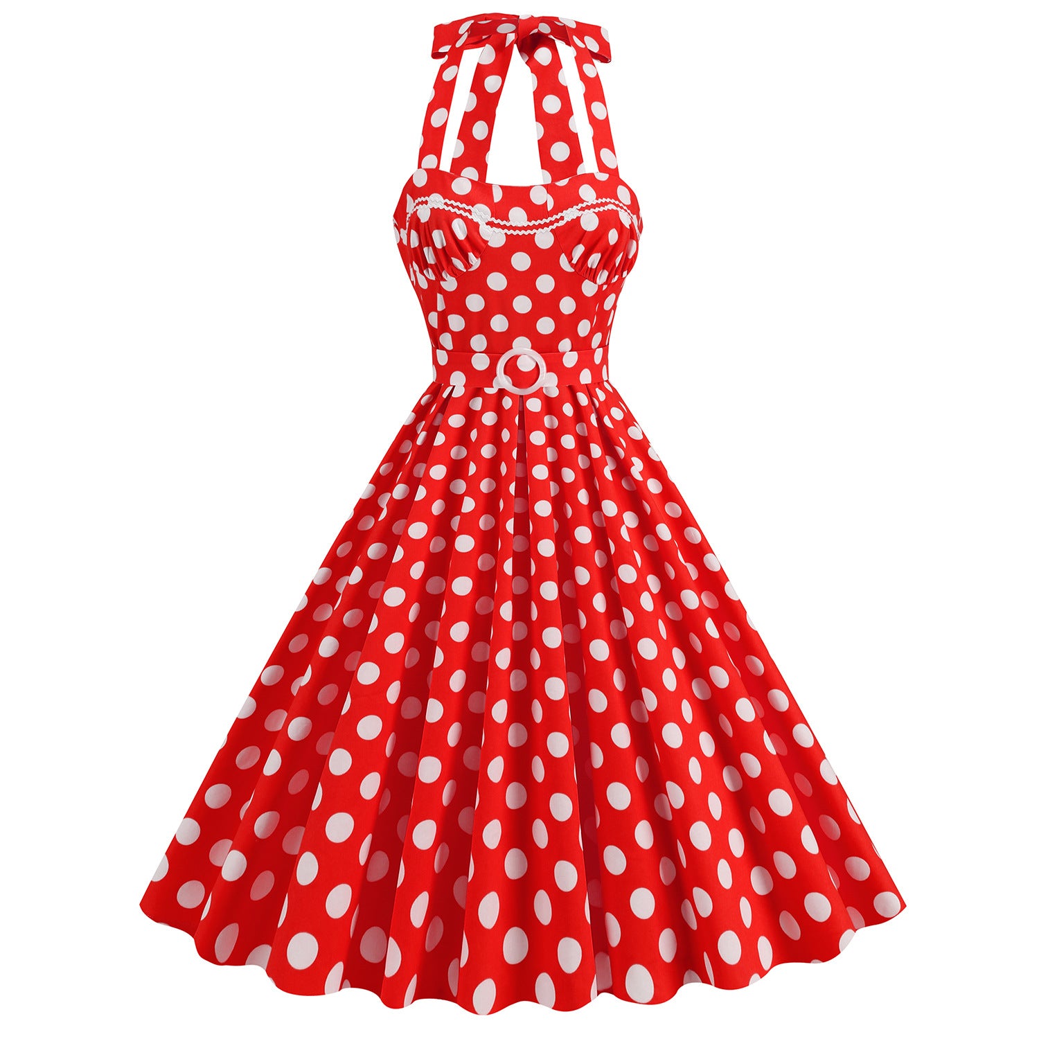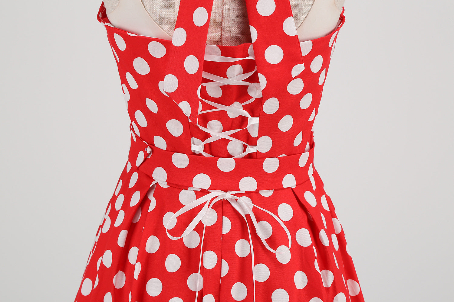 Step back in time with our 1950s Yellow Retro Polka Dot Halter Belted Vintage Dress. Its traditional A-line design provides a flattering silhouette, and the halter neckline adds a timeless element. The adorable white polka dots on a sunny yellow fabric give off a vintage feel, making it perfect for any event.