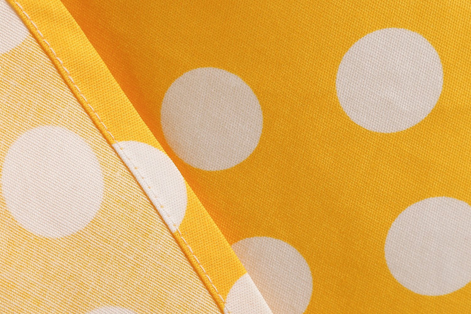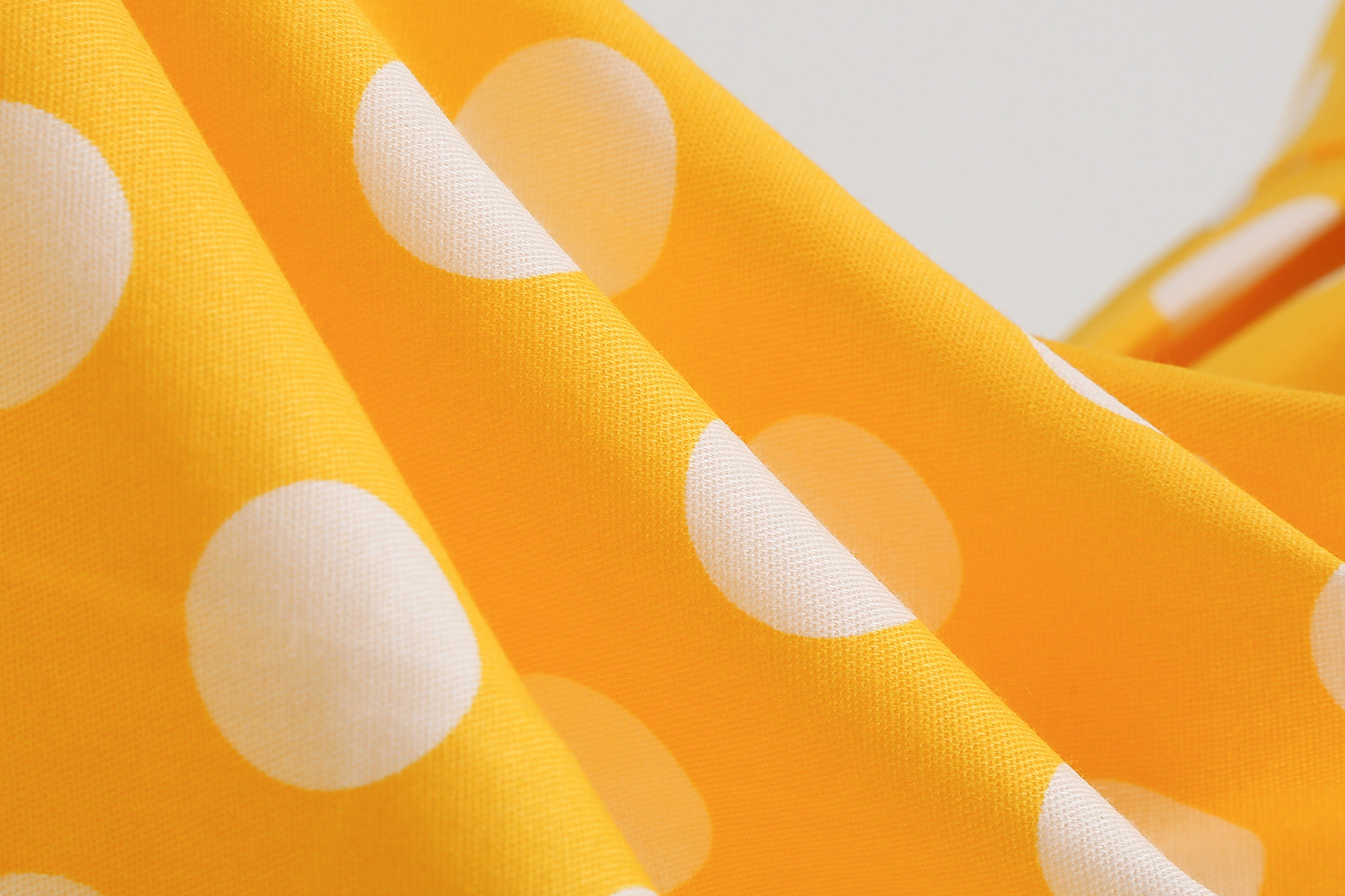 • Color and Pattern: Yellow color adorned with playful white polka dots