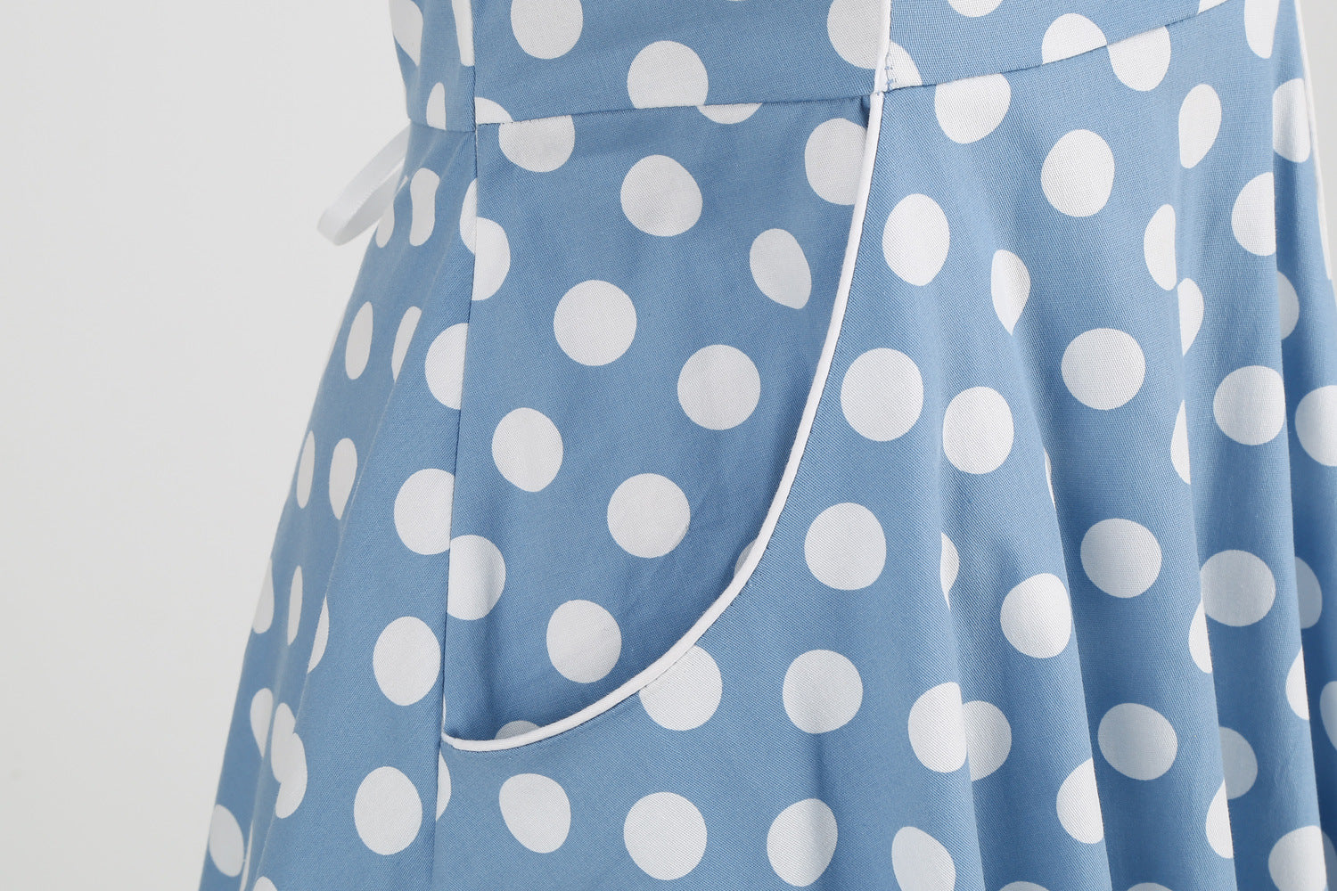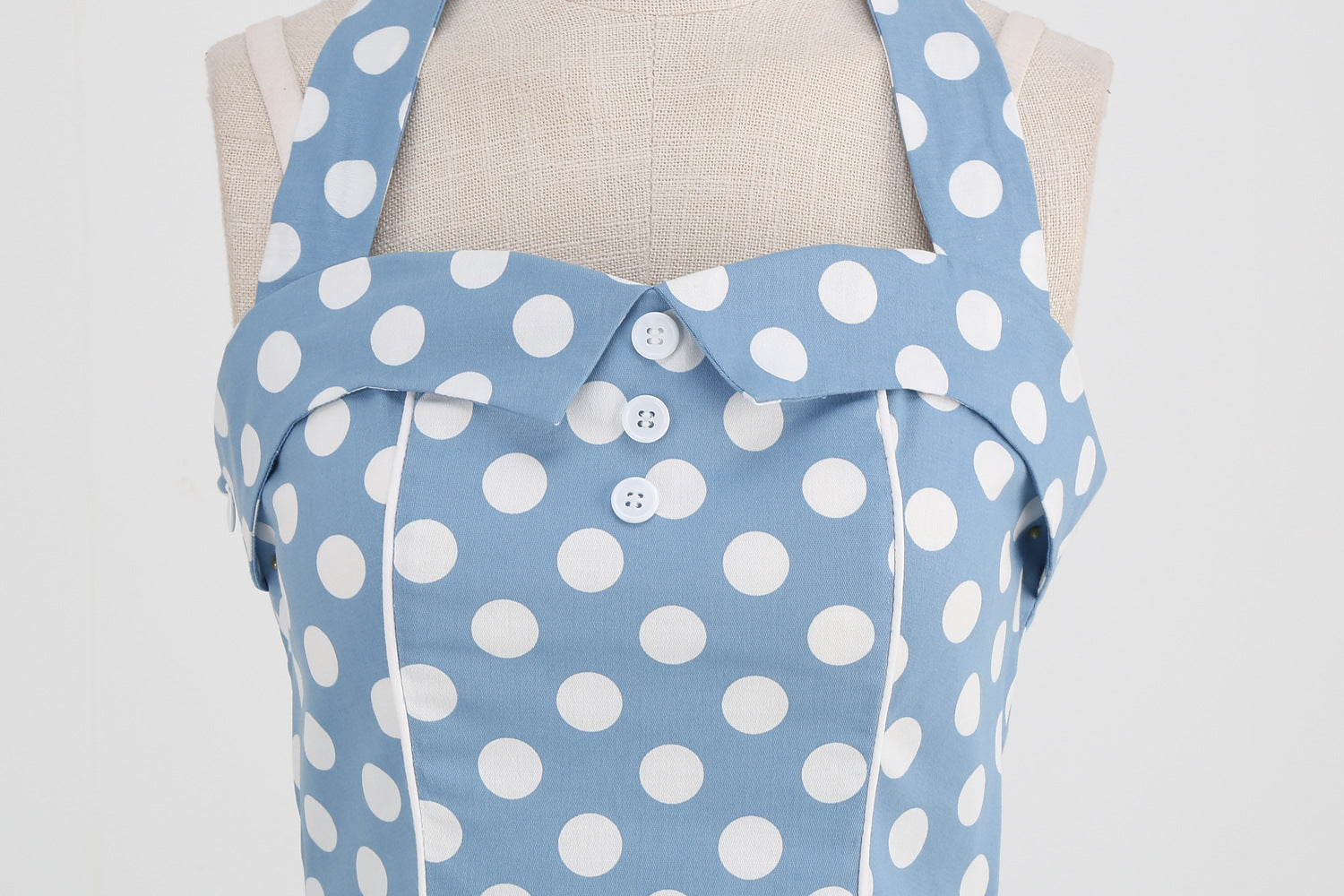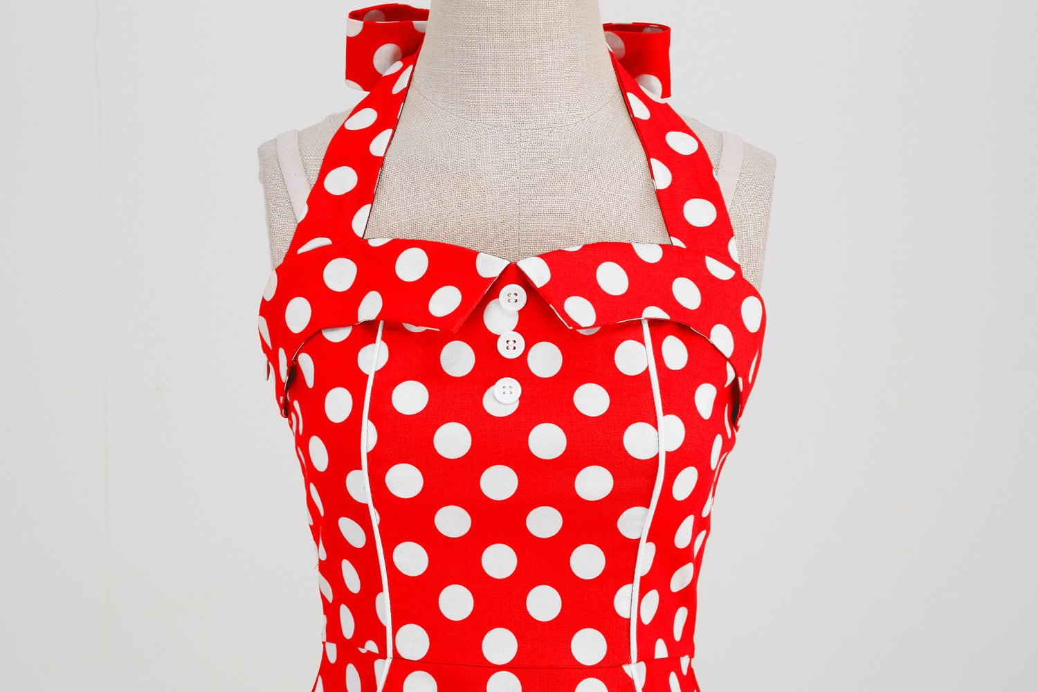 Experience the nostalgia of the 1950s with our Yellow Retro Polka Dot Halter Neck Vintage Dress. The classic A-line shape flatters any figure, while the addition of a bow on the halter neckline adds a timeless touch. With its playful polka dots and vibrant yellow fabric, this dress exudes a vintage charm that is perfect for any occasion.