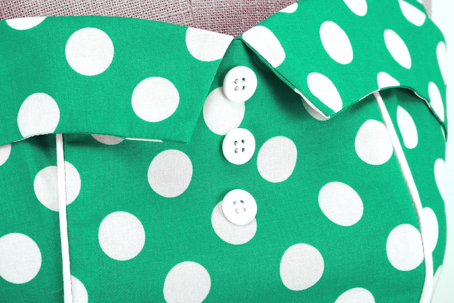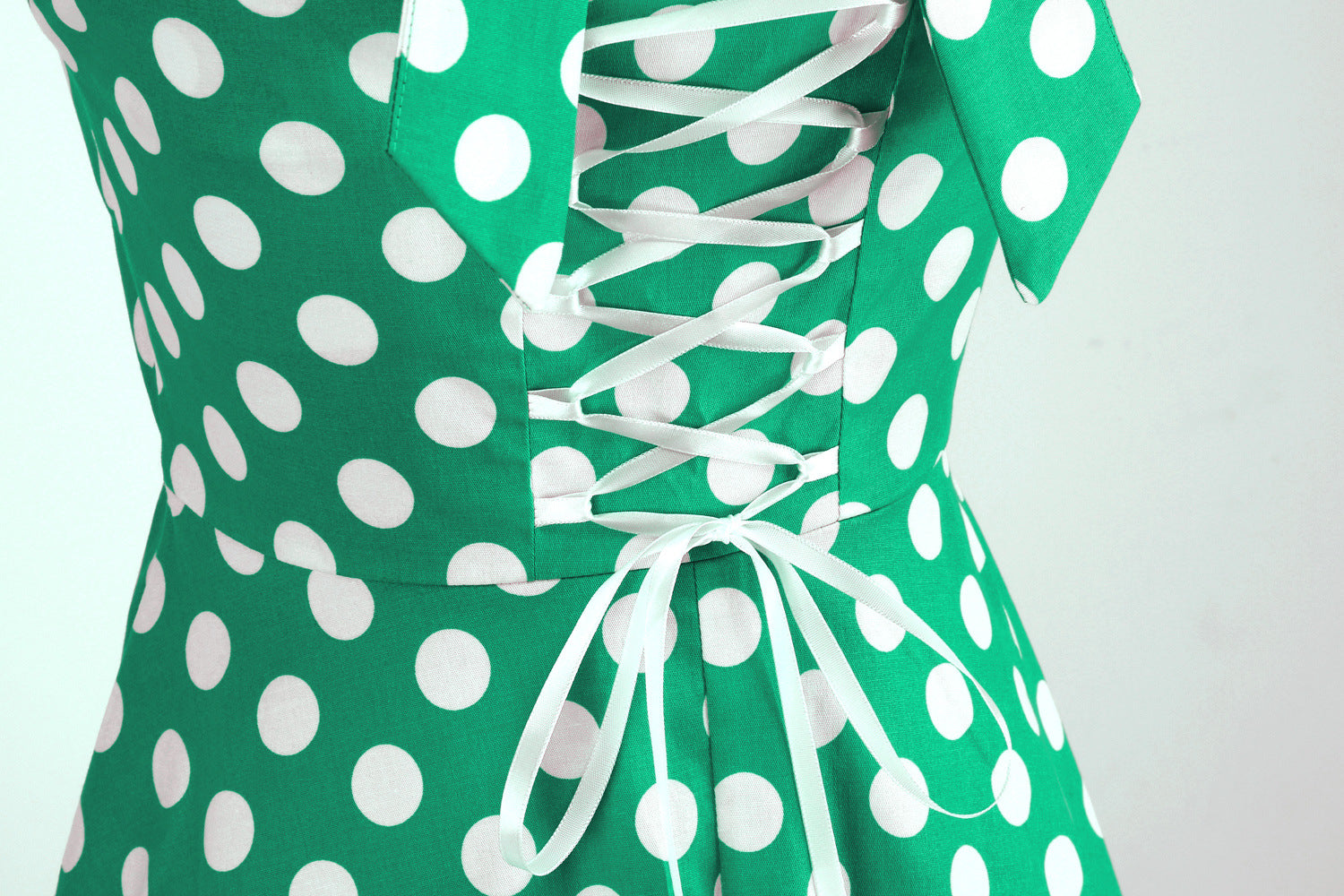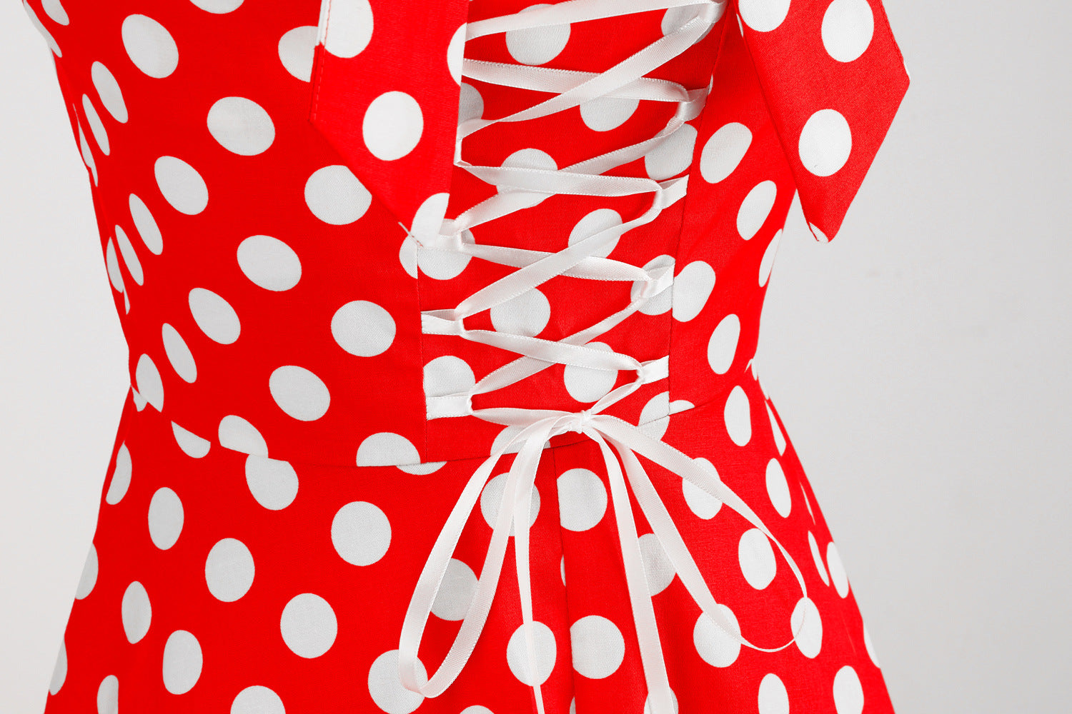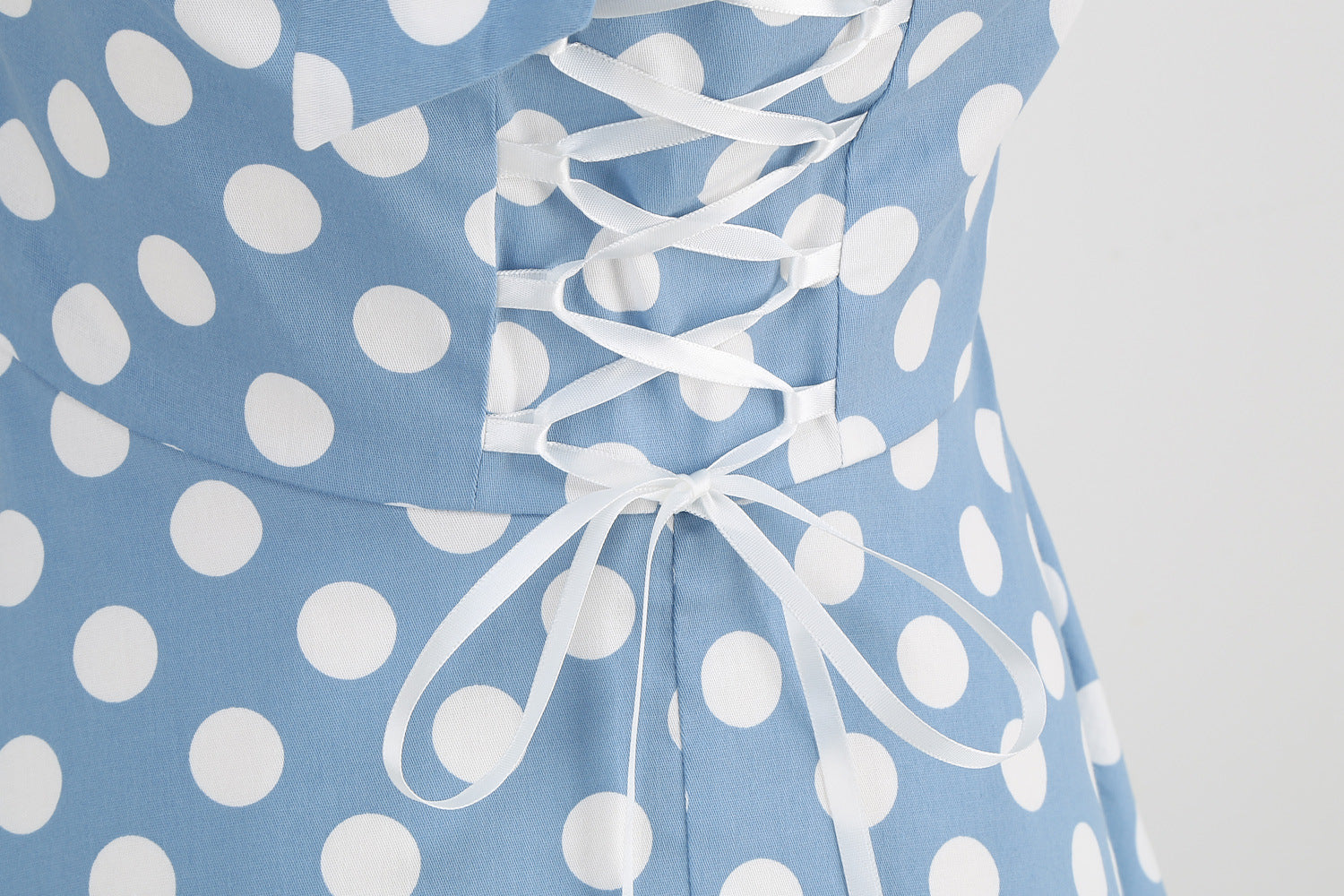 Experience the nostalgia of the 1950s with our Yellow Retro Polka Dot Halter Neck Vintage Dress. The classic A-line shape flatters any figure, while the addition of a bow on the halter neckline adds a timeless touch. With its playful polka dots and vibrant yellow fabric, this dress exudes a vintage charm that is perfect for any occasion.