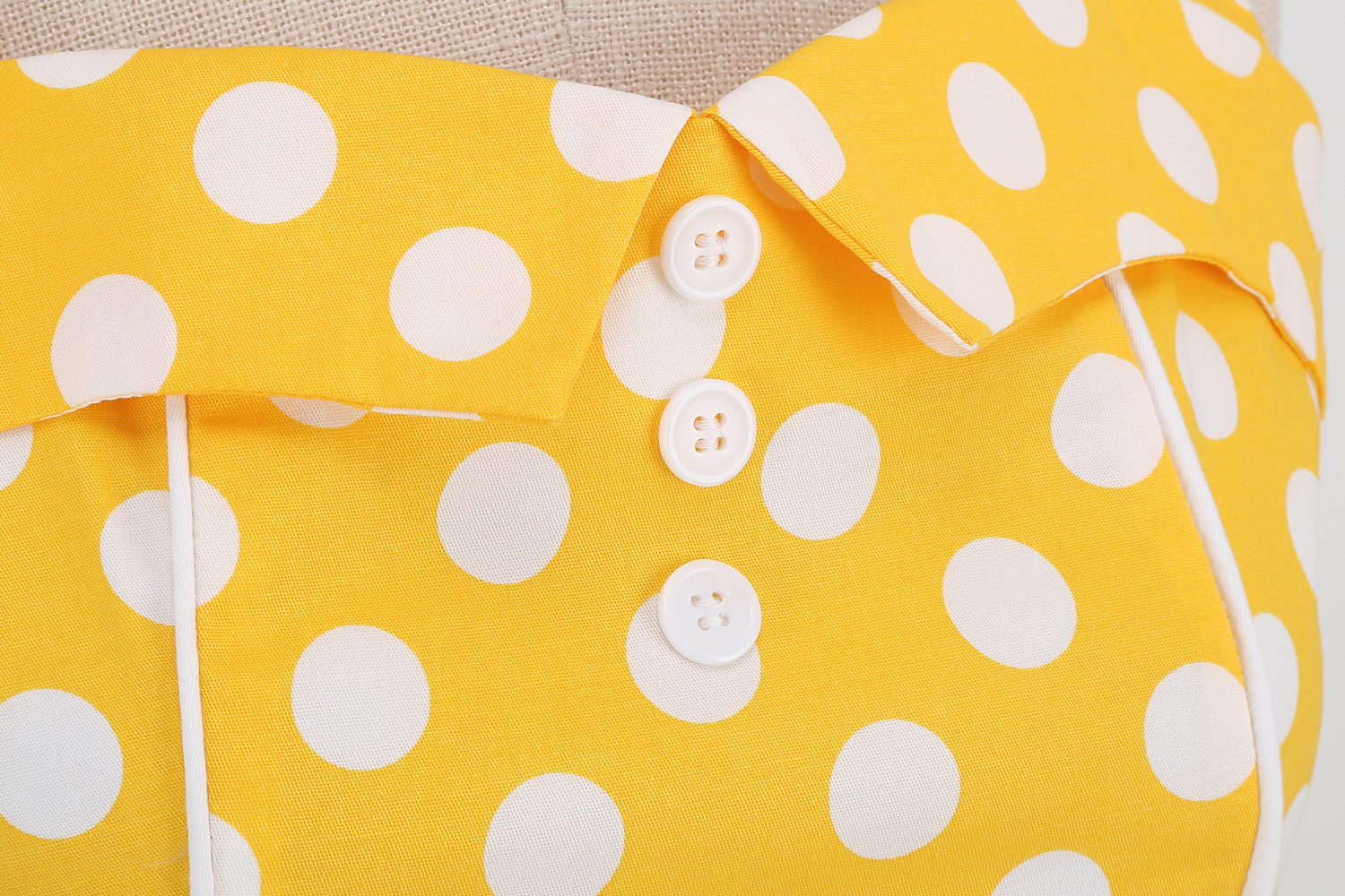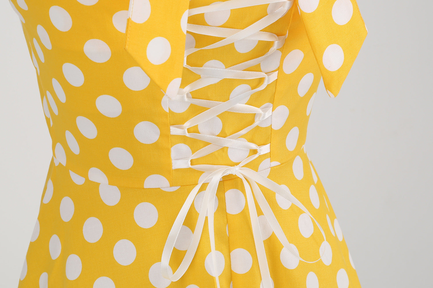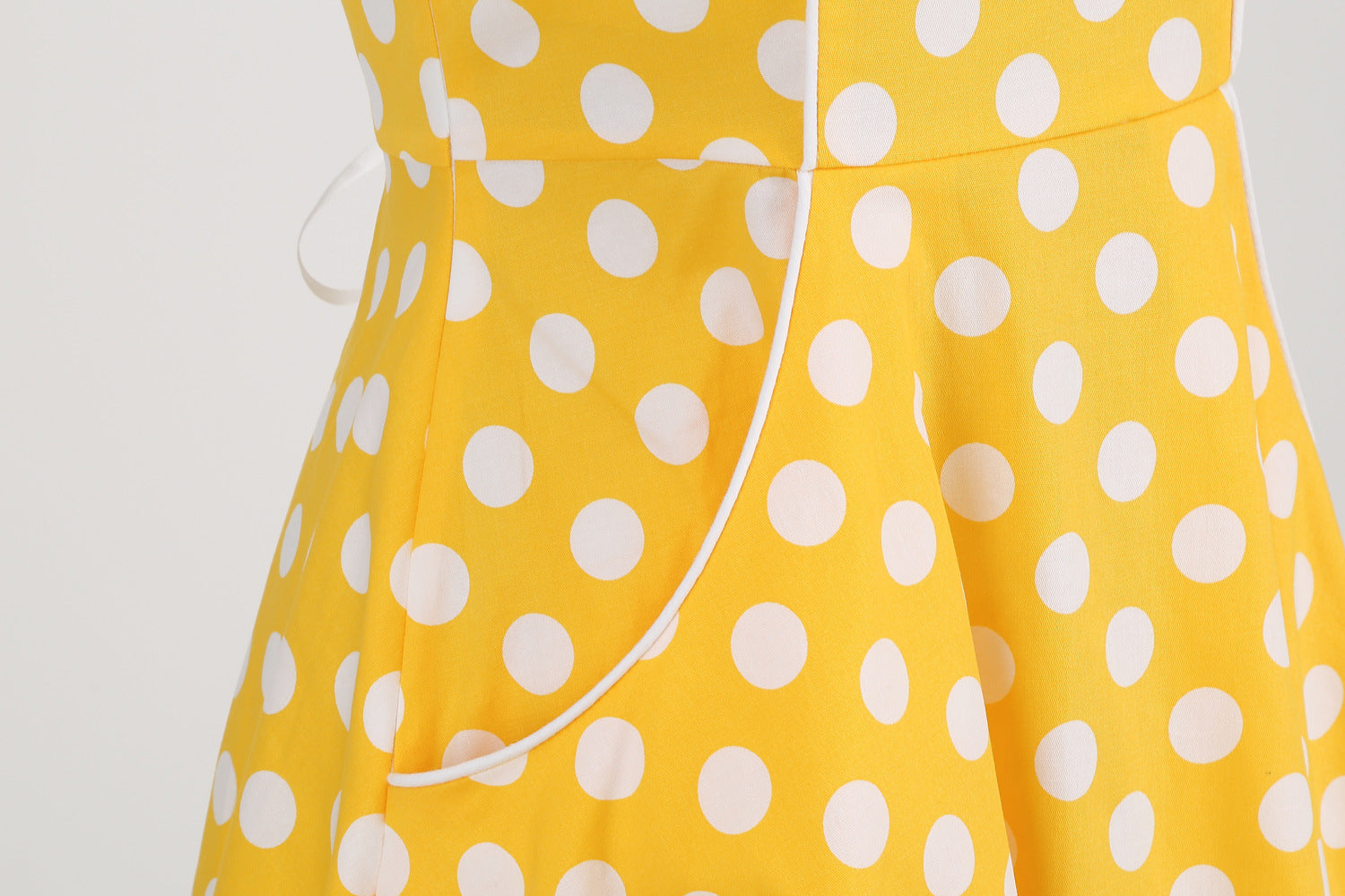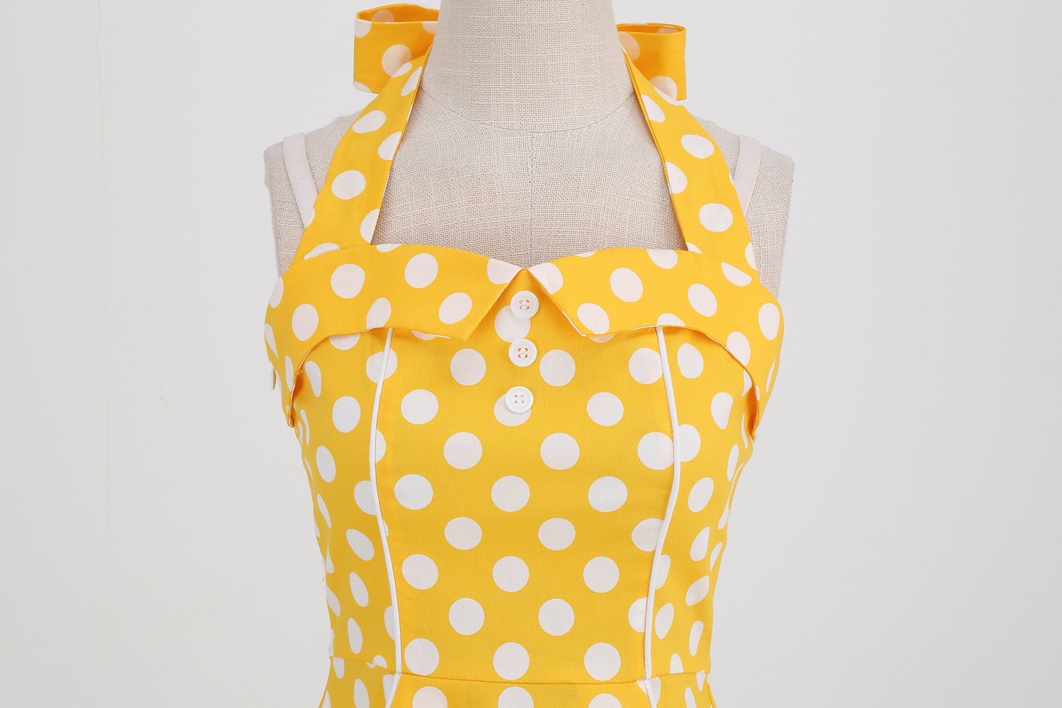 1950S Yellow Retro Polka Dot Halter Neck Vintage Dress