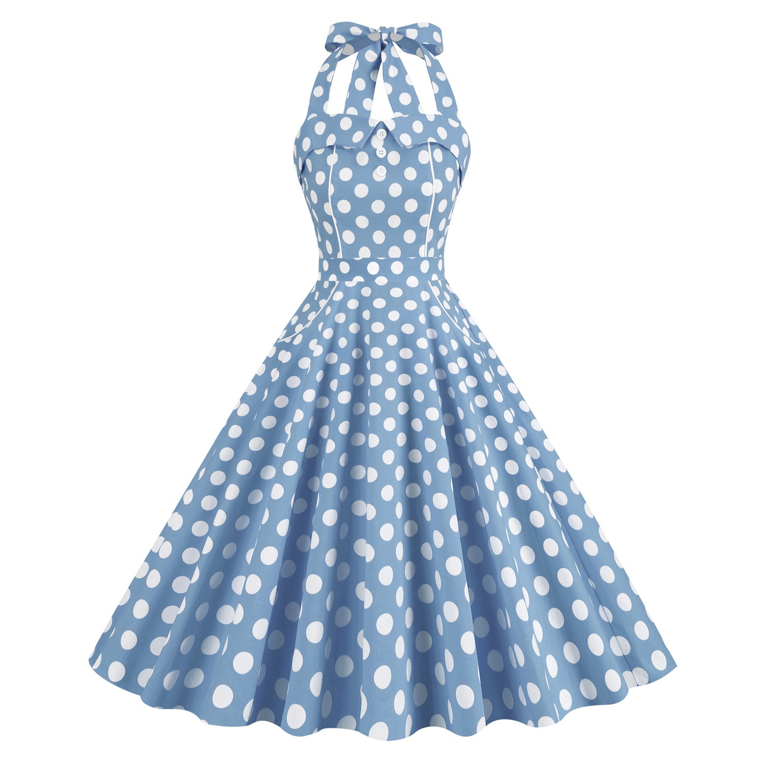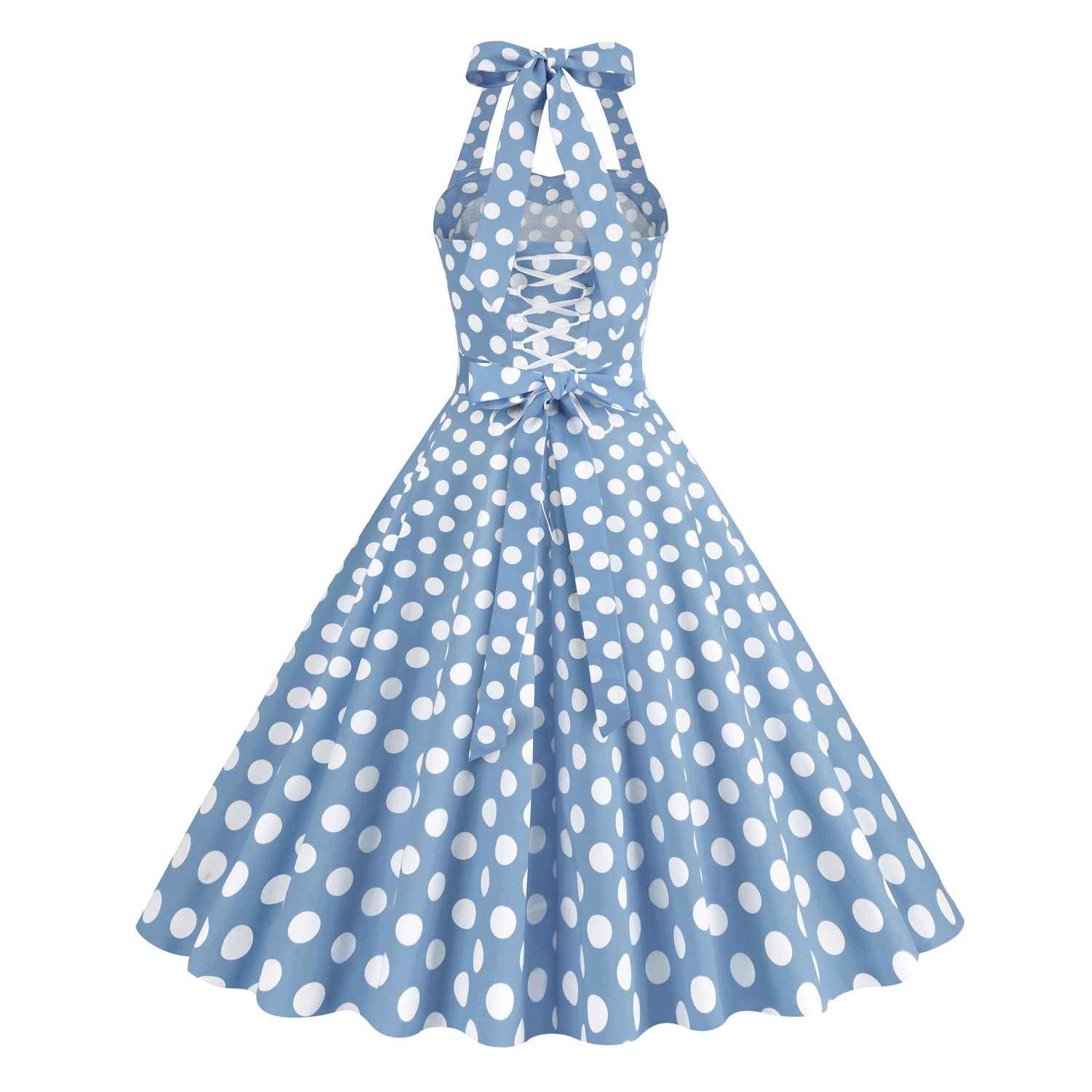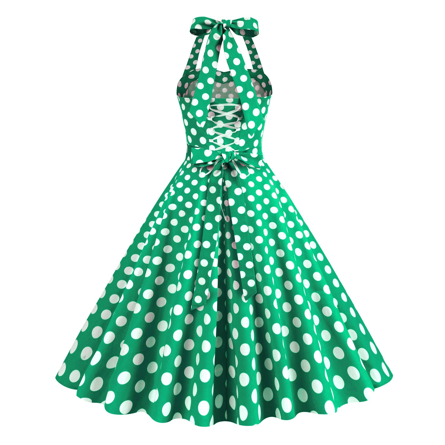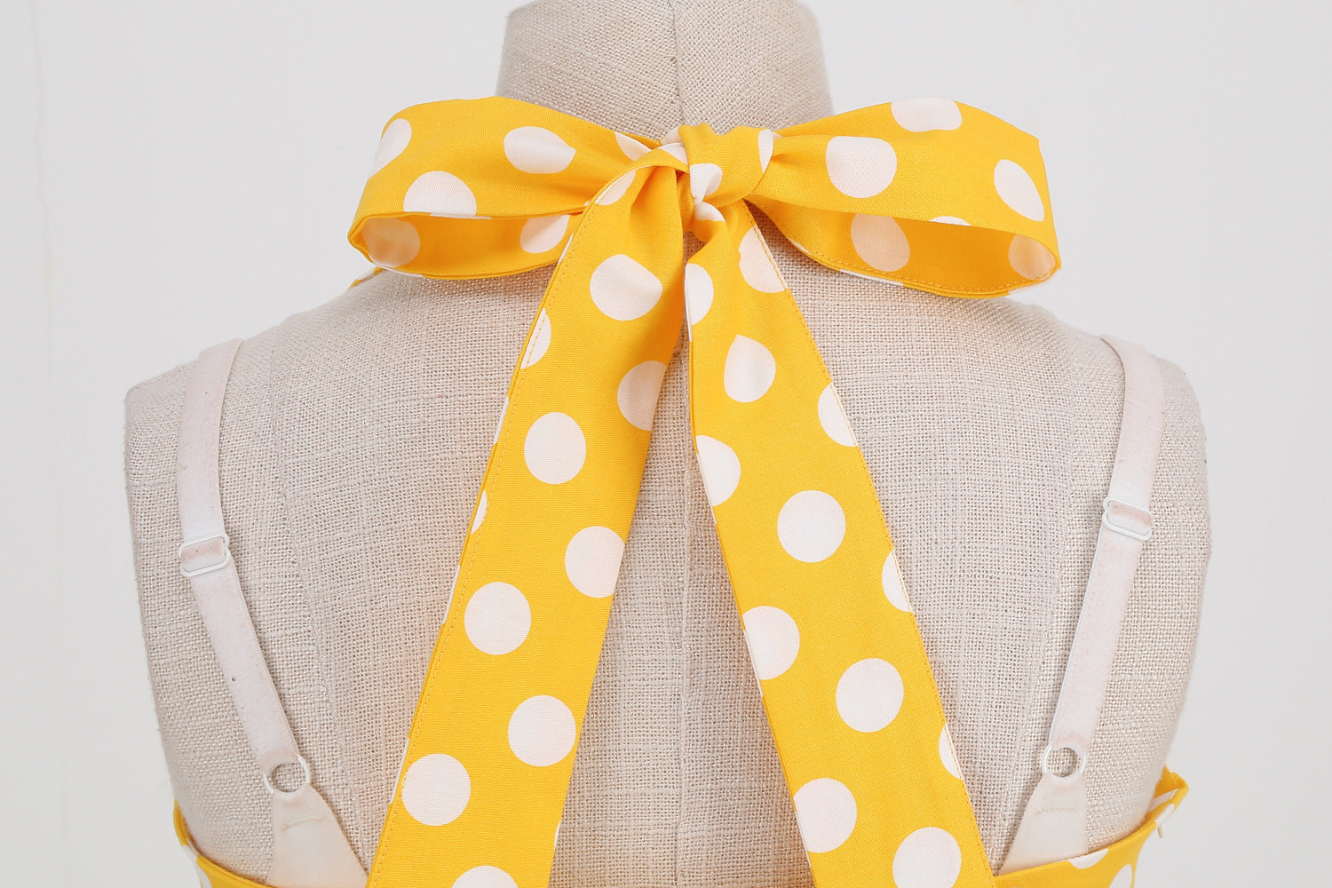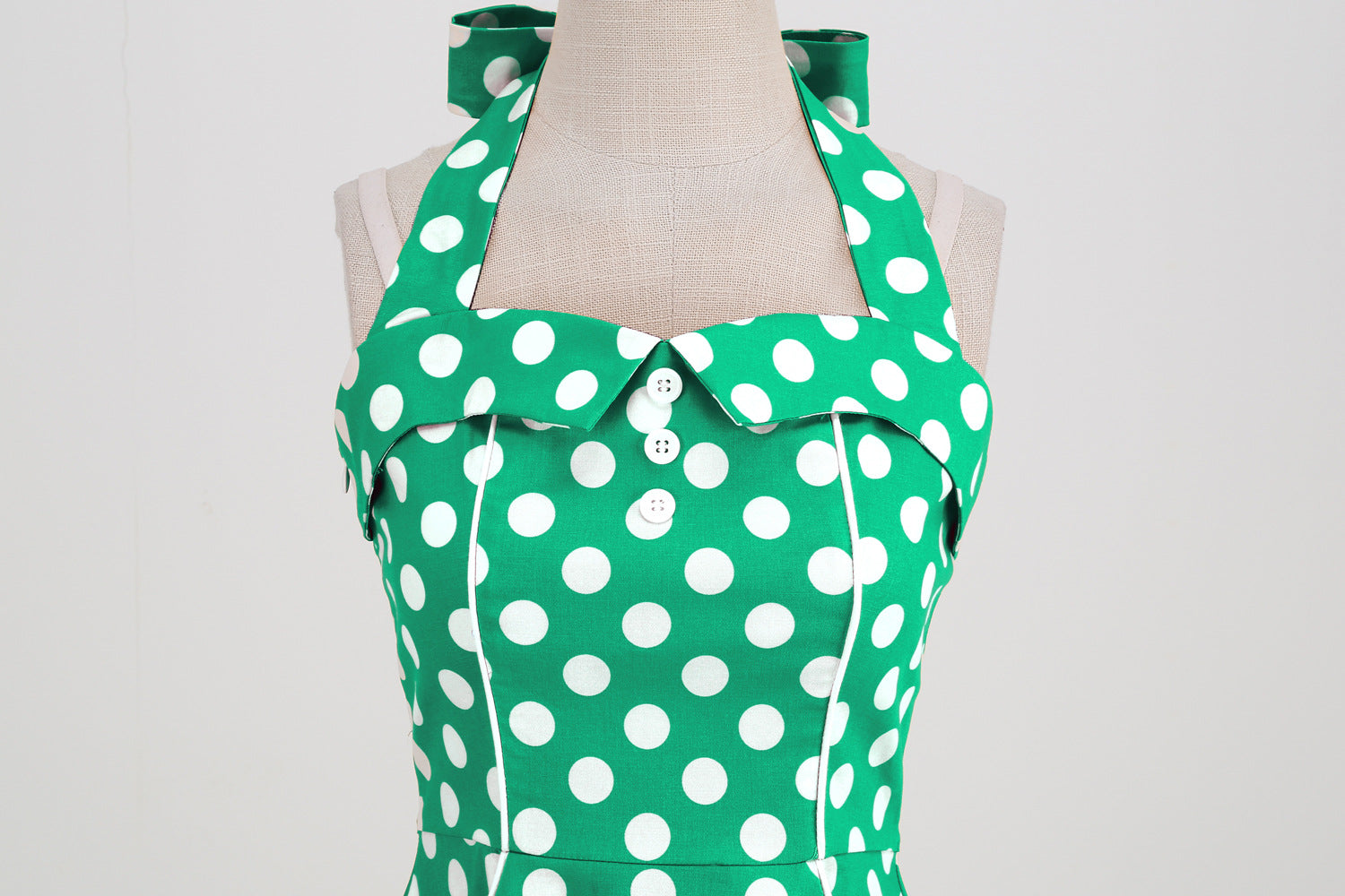 1950S Yellow Retro Polka Dot Halter Neck Vintage Dress
