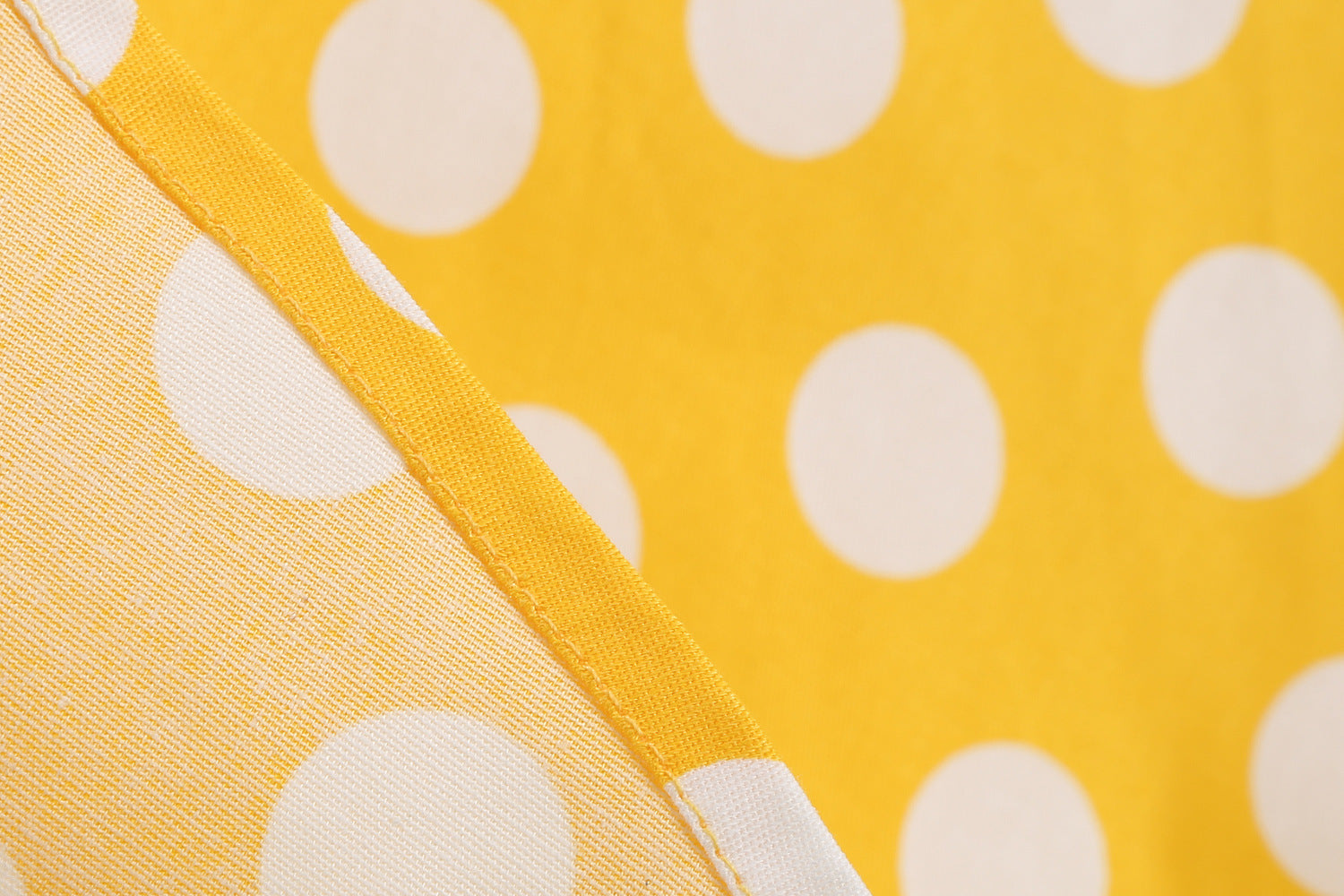• Color and Pattern: Yellow color adorned with playful white polka dots