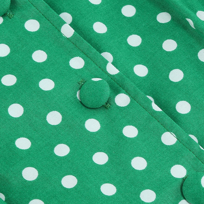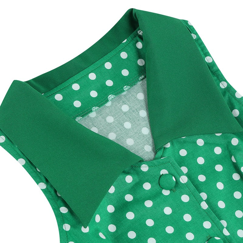 1950S Classic Green Polka Dot Collared Sleeveless Vintage Swing Dress