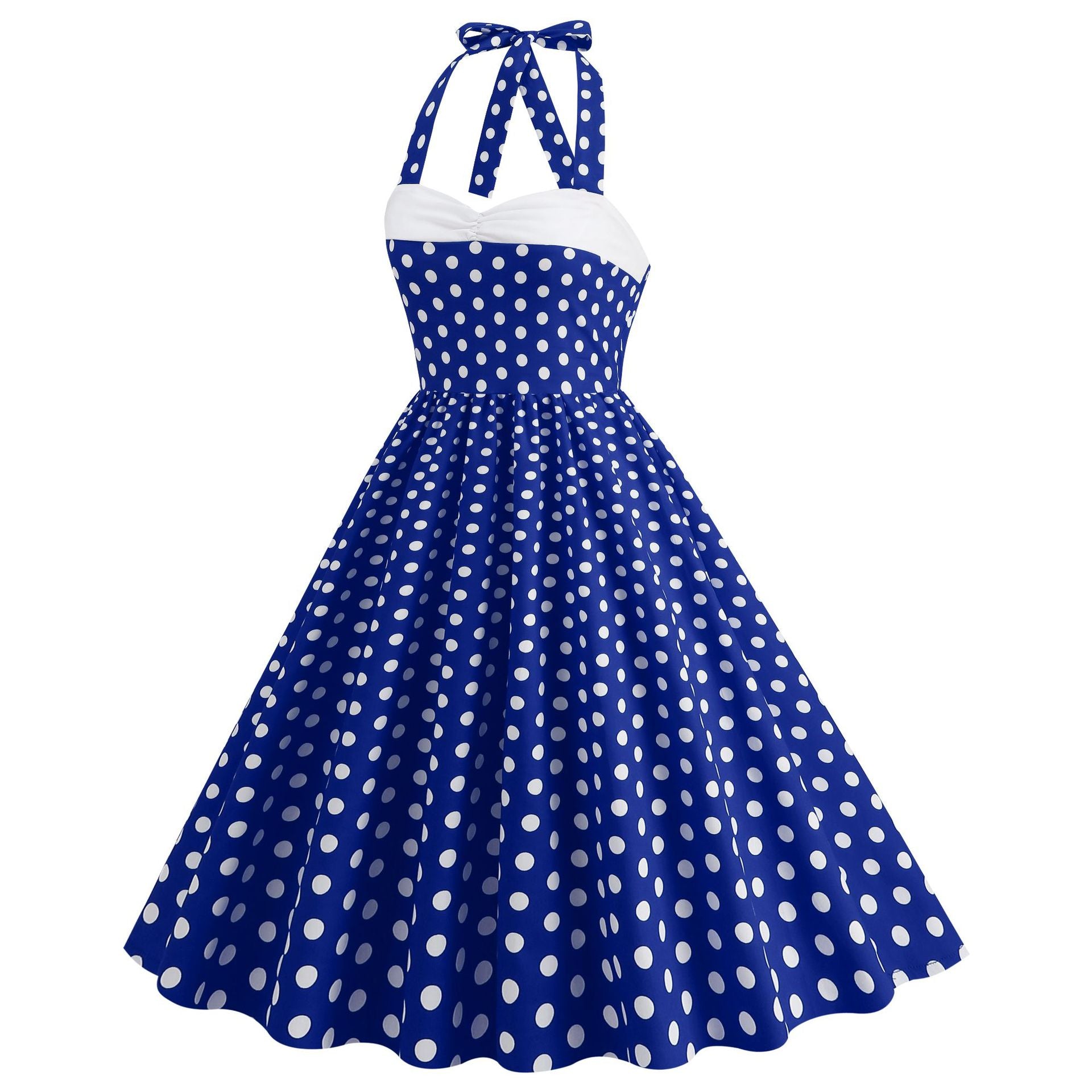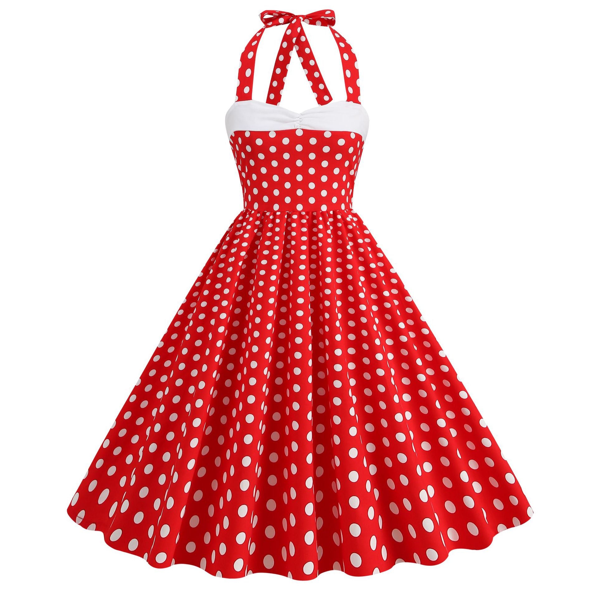 1950S Retro Red Polka Dot Halter Neck Vintage Swing Dress
