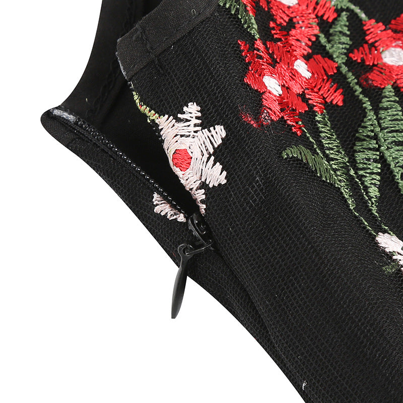 Imagine feeling the beauty of nature in our Floral Embroidered Sleeveless Vintage Swing Dress. Delicate floral embroidery adds a touch of elegance and charm, making it the perfect choice for any special occasion.