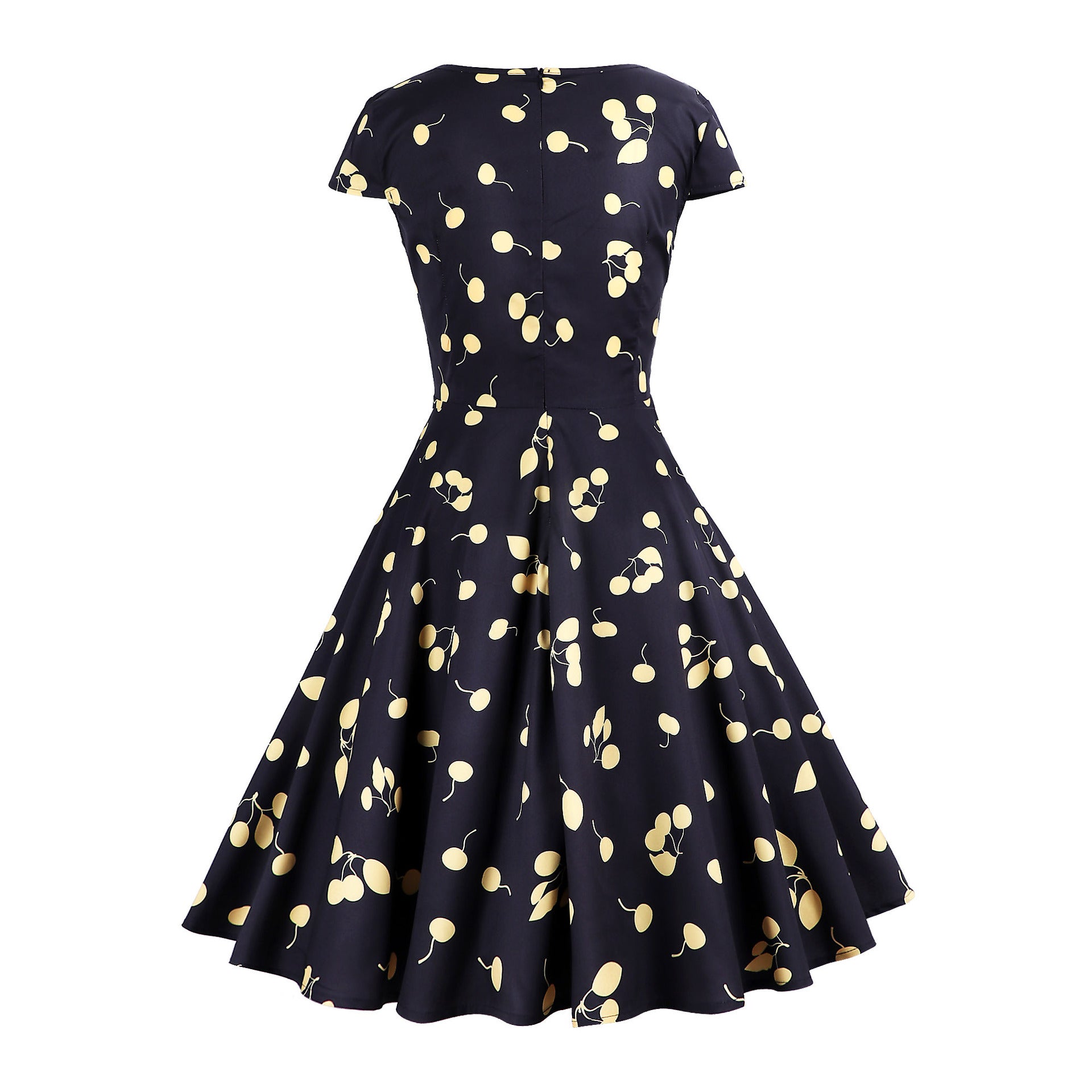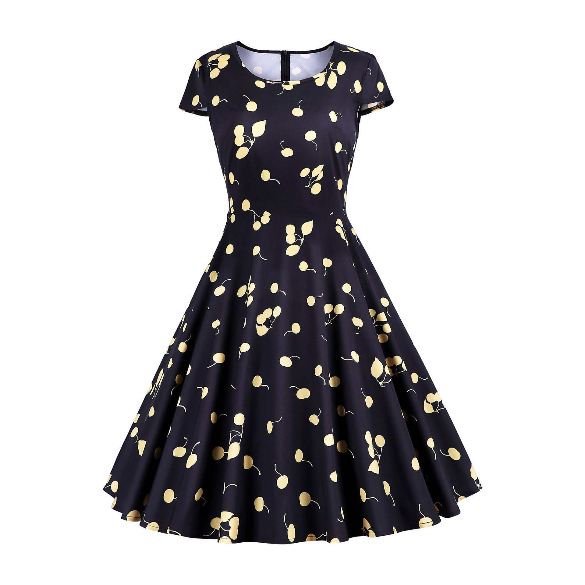 1950S Black Floral Print Cap Sleeve Vintage Dress