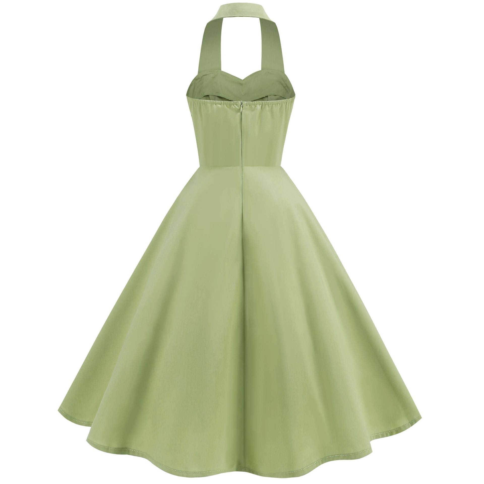 1950S Light Green Halter Neck Sleeveless Vintage Dress