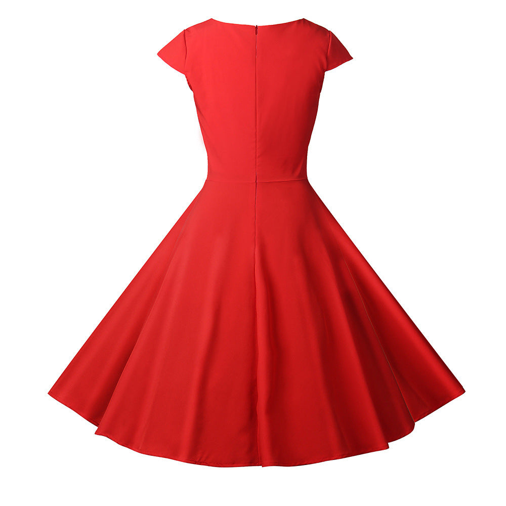 1950S Red Short Sleeve Wrap V-Neck Vintage Dress