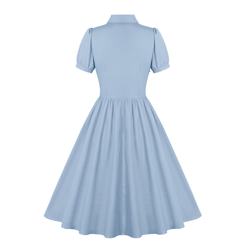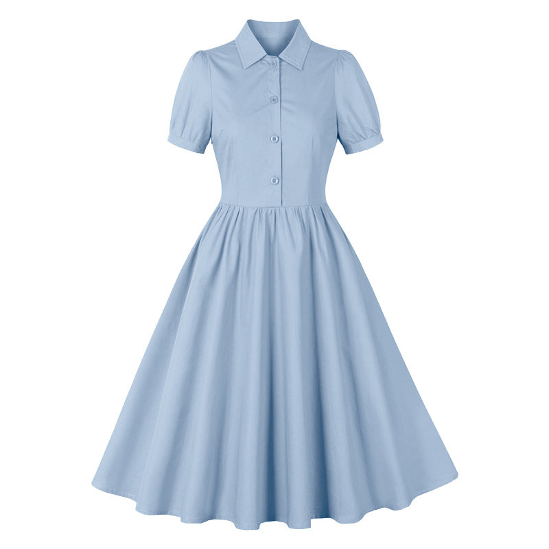 1950S Light Blue Button-Up Short Sleeve Vintage Dress