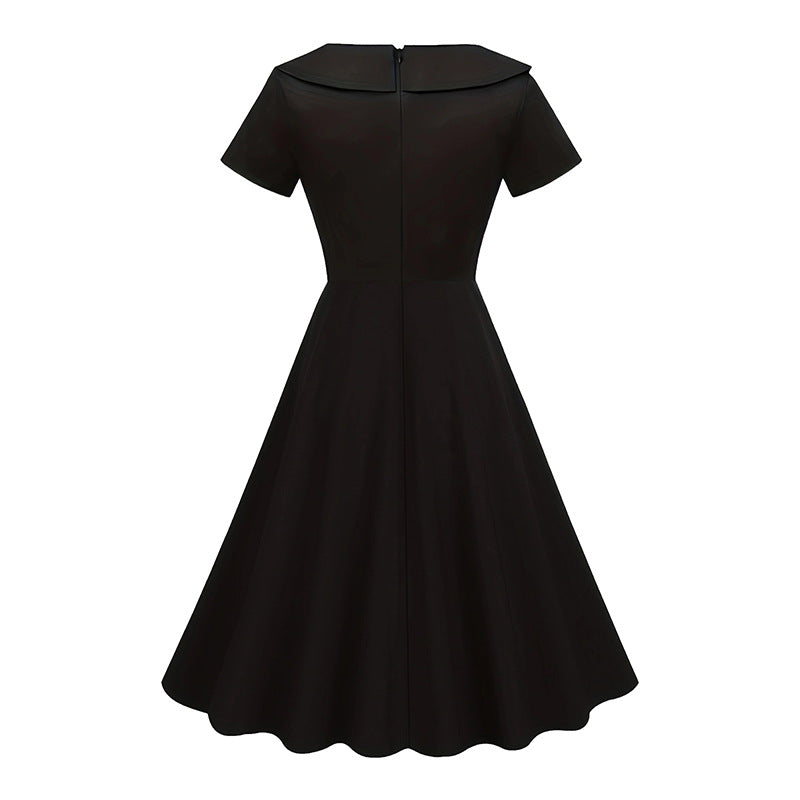 1950S Black Short Sleeve Button-Front Vintage Swing Dress with Contrast Collar