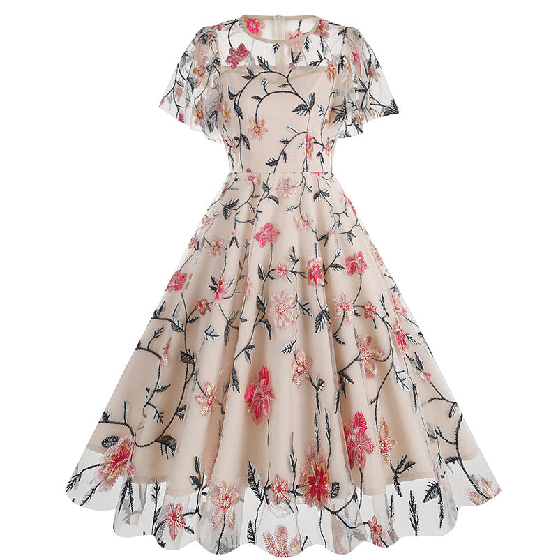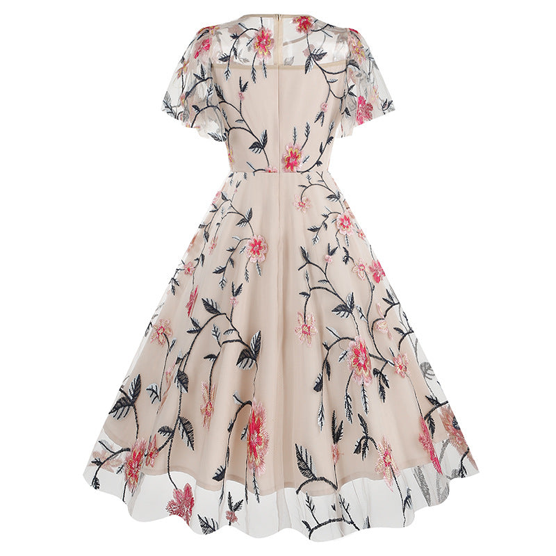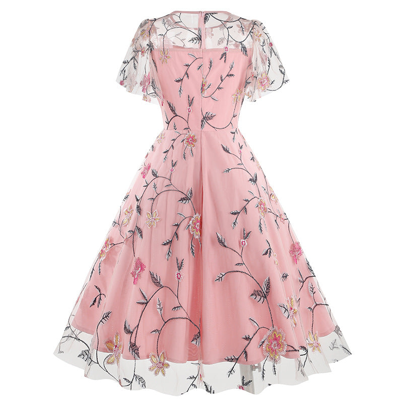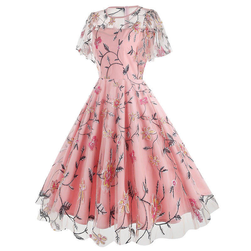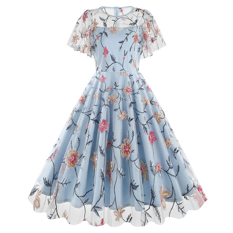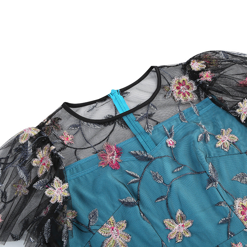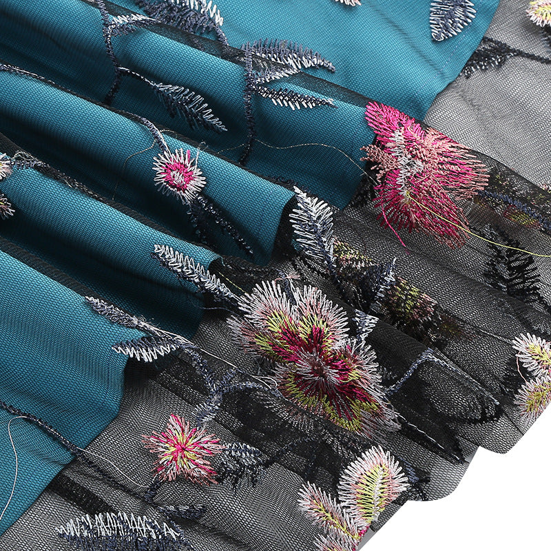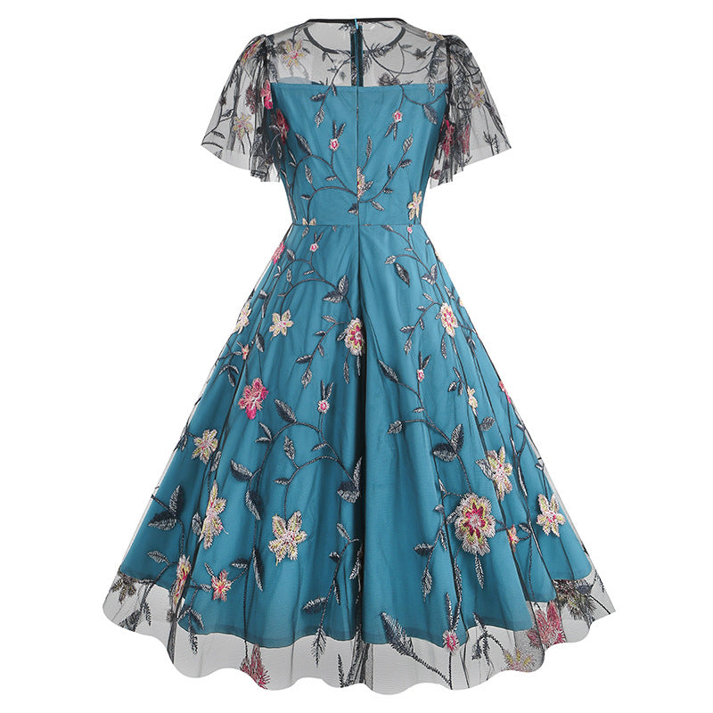 Experience timeless elegance by slipping into our Elegant Teal Floral Embroidered Lace Overlay Vintage Swing Dress. This exquisite dress features a rich teal color and detailed floral embroidery, for a truly timeless and captivating look.
