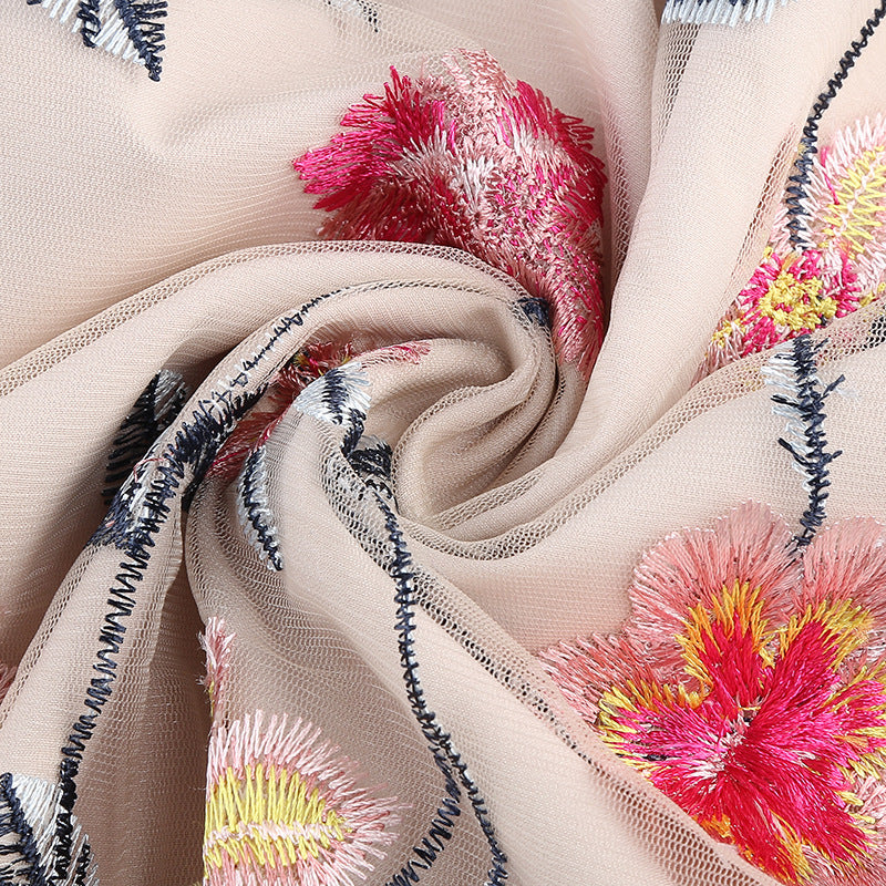 • Color and Pattern: Teal color with multi-colored floral embroidery